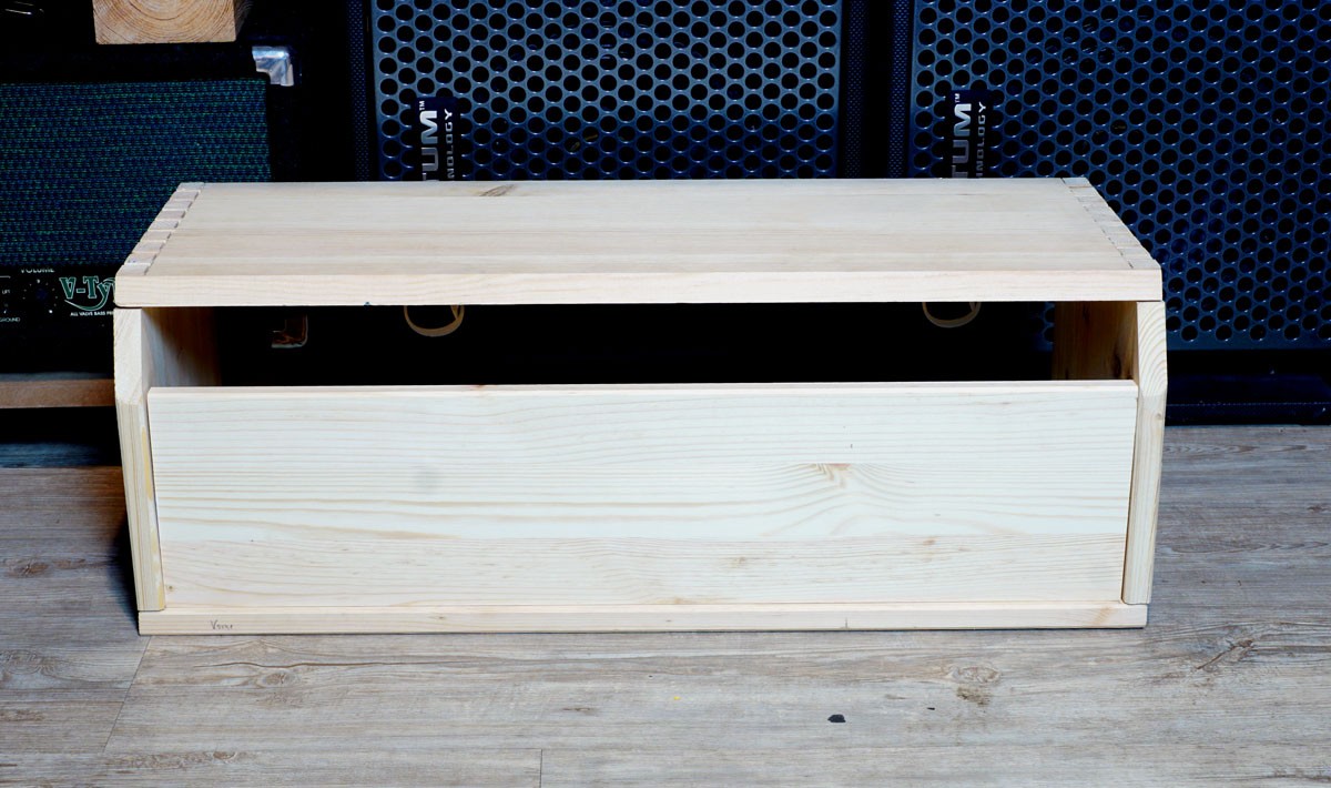 Ich habe mich für Leimholzplatten aus Fichte entschieden. Die sind recht stabil, leicht und lassen sich gut verarbeiten. Etwas aufwendiger sind die Schwalbenschwanzverbindungen der einzelnen Gehäuseteile. Ich hätte diese auch "stumpf" per Leim und Schraube verbinden können, da man diese aufgrund des späteren Tolex-Bezuges nicht sehen kann.