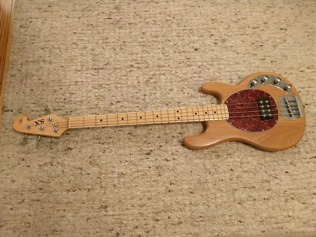 Ich hab mir neulich den da für wenig Geld gekauft. Er sollte als Basis für einen Umbau in Richtung MM Sabre Bass dienen, da ich zwei EMG Humbucker übrig habe und die irgendwo einsetzen wollte.