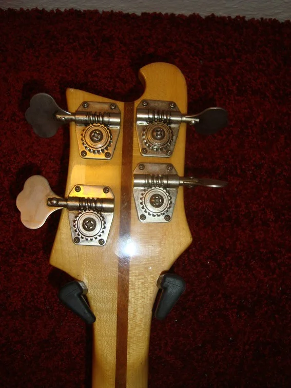 Er hat einen durchgehenden und nicht wie damals üblich einen eingeschraubten Hals. Das hat einen entscheidenden Einfluss auf das Sustain und den Klang. Dazu kommt die ungewöhnliche Mensur von 1/4 Zoll, was ebenfalls zum einzigartigen Klang und der besonderen Bespielbarkeit beiträgt.