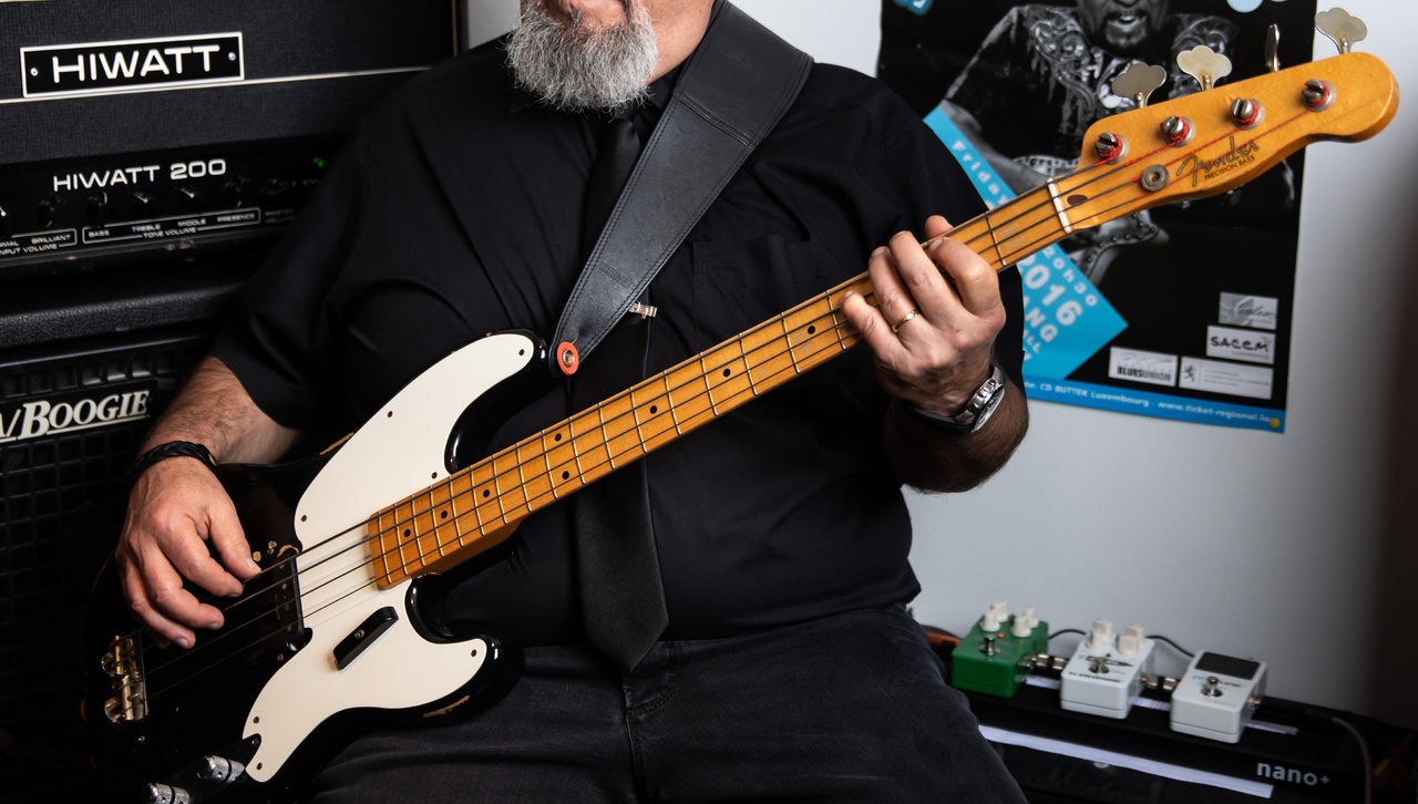 Fender CS 55 modifiziert (Seymour Duncan 51 P Bass Stack; Fender 51 P-Bass wiring ersetzt durch Standard P-Bass wiring, push/pull Poti zum umschalten singlecoil/humbucker). Klingt deutlich besser als der original 1953 P Bass der mal in meinem Besitz war.