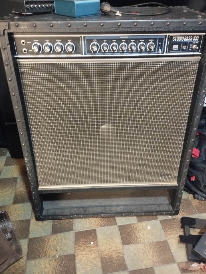 Ich konnte mit etwas Glück an diesen Verstärker kommen, der doch inzwischen verwaist war. Die Räumlichkeiten waren wohl nicht optimal, so dass durch Korrosion ein Schaden am Speaker entstanden ist und er ganz leichte Verzerrungen macht.