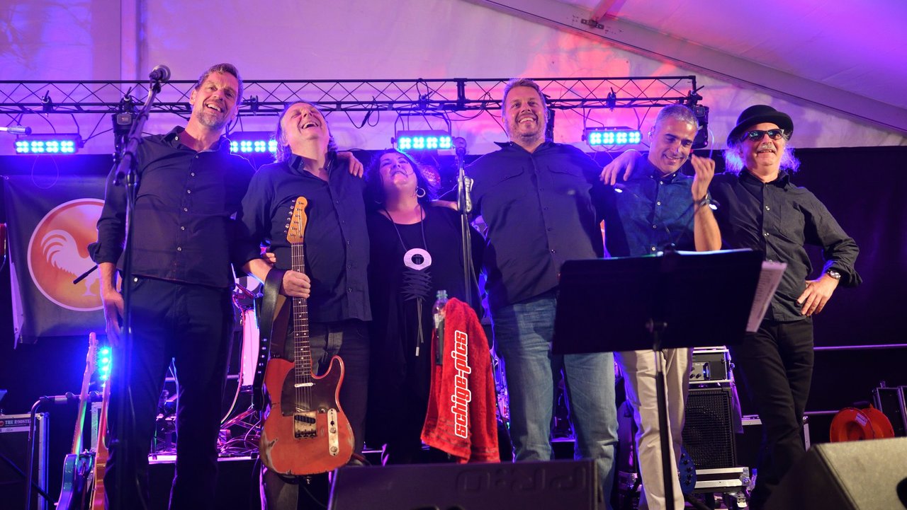 so wie Jost Halenta schrieb; Notenständer: da muss ich meinem Verein voll in den Rücken fallen. Die Dinger sind abturnend wie Miederunterwäsche. Ich krieg die Unsitte bei uns nicht ausgeräumt. Fehlt nur noch die Lesebrille. Das ist fast zum fremdschämen. Die Dinger gehören per Gesetz von der Musikerpolizei verboten. Oder mit einer Strafsteuer von 5000 % beim Kauf belegt. Unsere Sängerin meint das zu brauchen. Teleprompter ist die Lösung. Will man nicht. Was hab ich da schon Diskussionen geführt.Rechts mein noch etwas sichtbar mein Glockenklangstack mit 1x12, Blue Sky, alles noch mit In Ear-Funk und Wireless Funk verbunden.