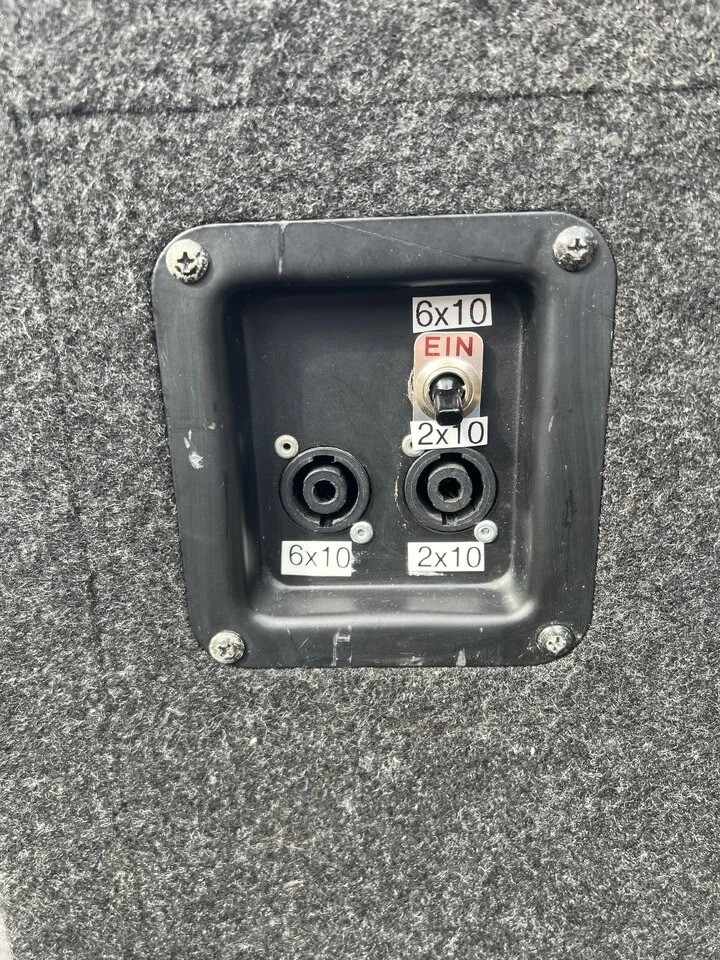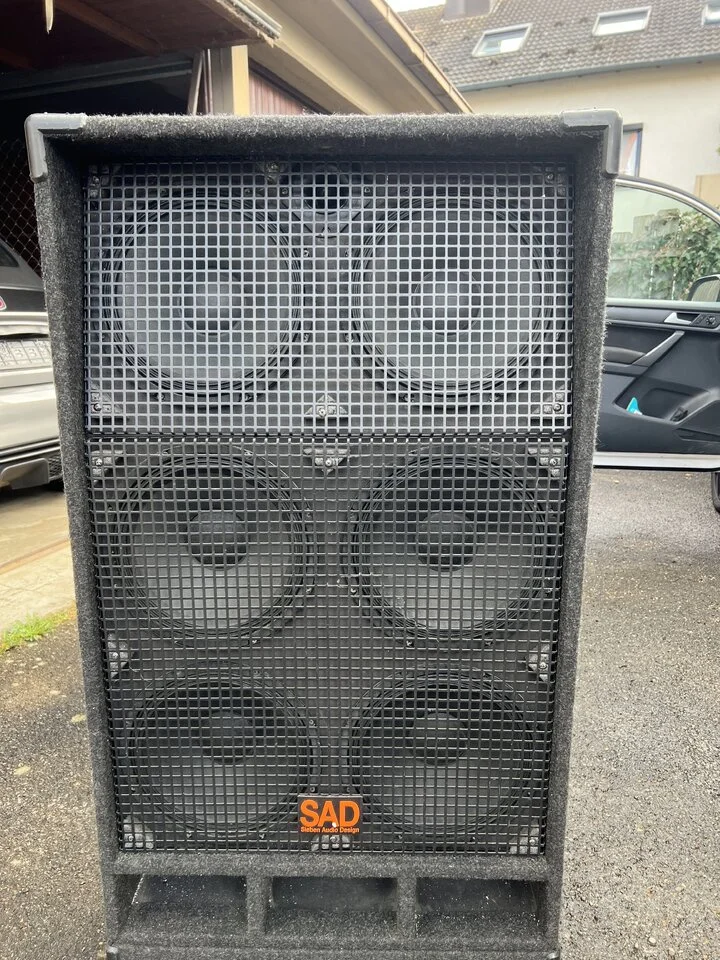 Die Besonderheit an der Box war ursprünglich zur Standart 6x10 dass die Bassreflexöffnung nach vorne geht ( Standart nach hinten) und die Bauform dadurch höher wird zuzüglich noch die festen Rollen . Die Gesamthohe der Box in Verbindung mit den 2 abgeschrägten oberen Speakern bietet somit sehr gute Vorraussetzungen für ein gutes Monitoring in m Nahbereich.