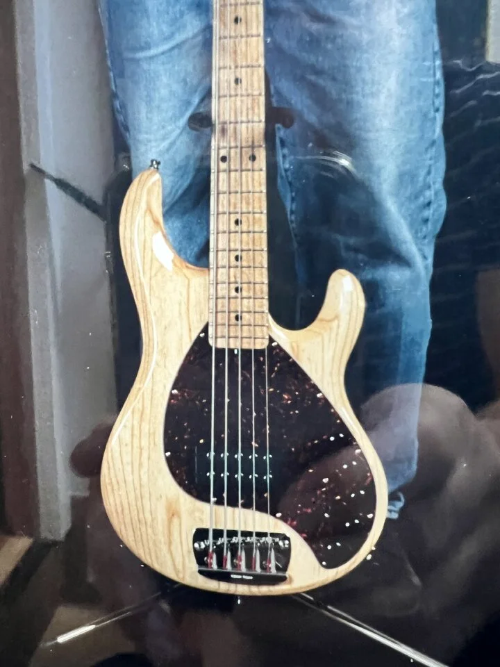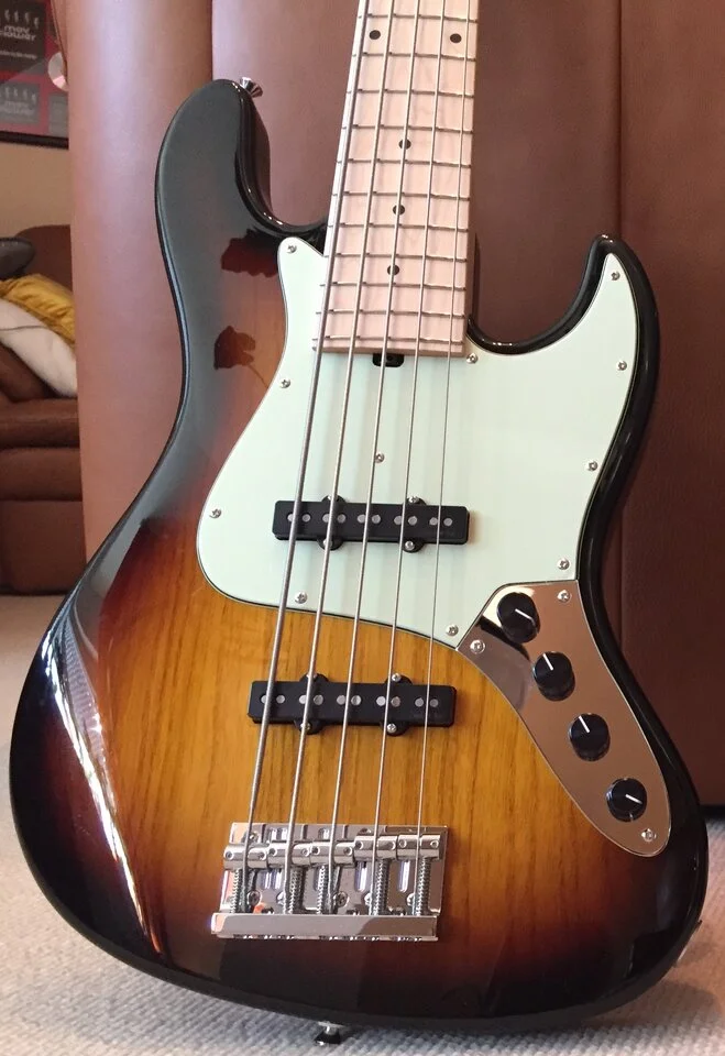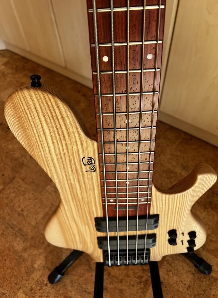 Als ich die Werkbank Fotos vom fertig montierten Bass bekommen habe, dachte ich schon, dass irgendwie die H Saite sehr dicht am Rand sitzt und die G Saite sehr viel Platz zum Griffbrettrand hat. Letztendlich habe ich das aber auf den schiefen Winkel des Fotos zurückgeführt.