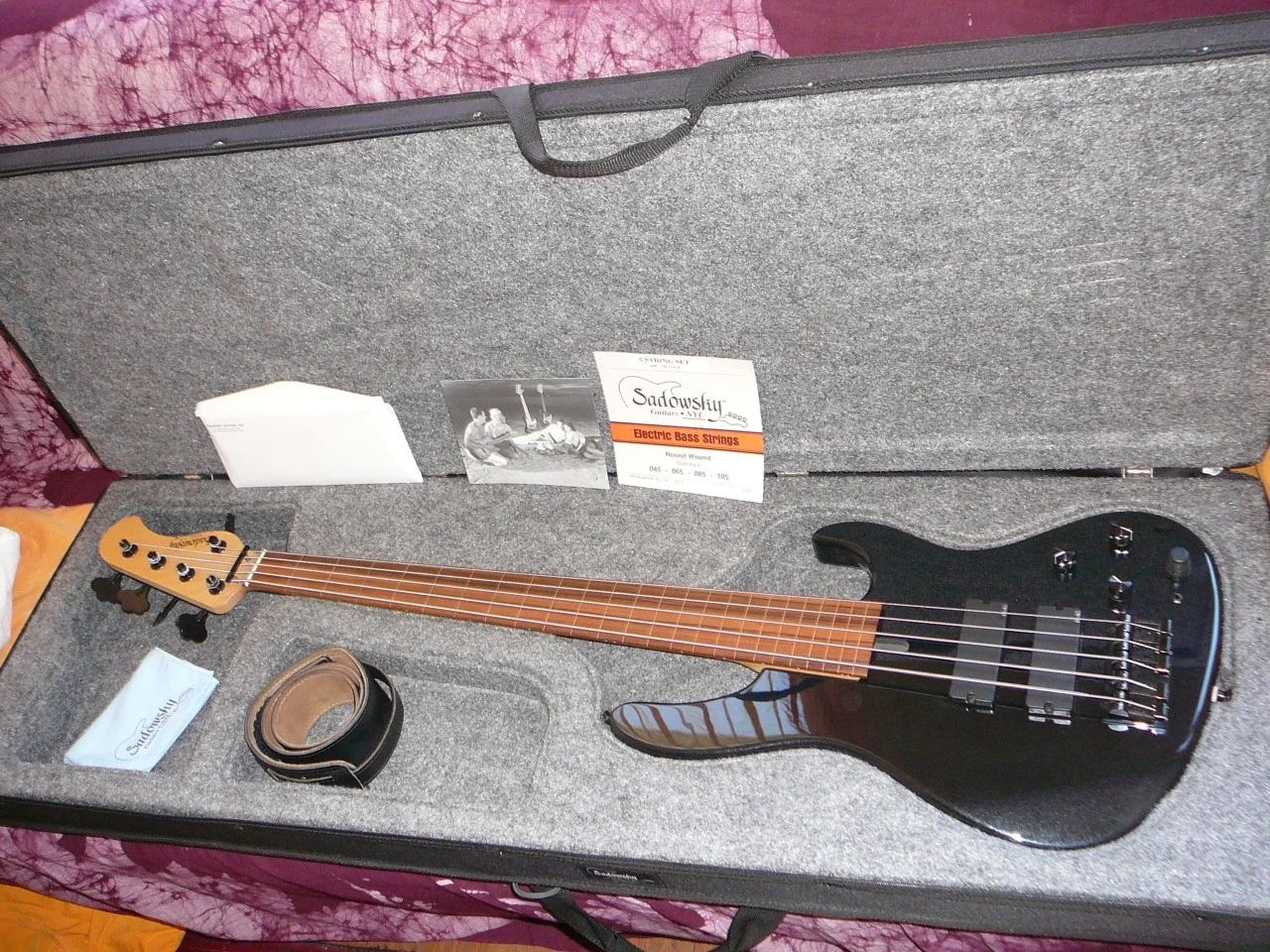 Sadowsky NYC modern 5-string fretless, ein wunderschönes Teil!!! Blackpearl mit schwarzer Hardware!