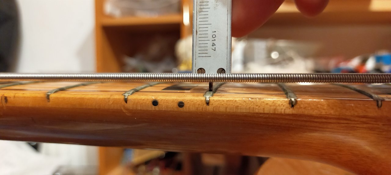 Vor allem sind die Bünde auch schon ganz schön runter.. . Wenn es Vintage Frets, dann hatten die mal 1mm Höhe, bei dir sieht es nach 0,3mm aus...ohe...