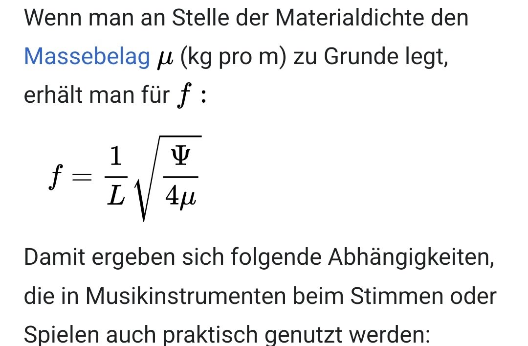 Die Frage könnte man auch stellen ob es an der Steifheit der Saite liegt und nicht an der Masse oder an beidem?Begründung - die Masse steigt. Eine dünnere Saite hat weniger Masse und erfordert daher weniger Zug, um auf dieselbe Tonhöhe gestimmt zu werden.