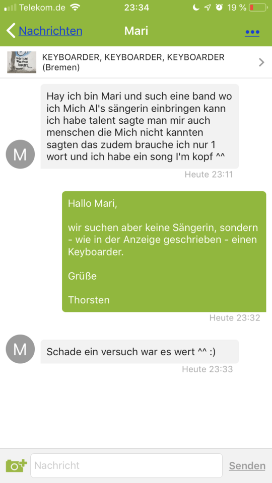 Ich wäre auf die von ihr geschriebenen Texte gespannt gewesenEs wird aber nicht besser... Auch nicht bei der Suche nach einem Keyboarder!