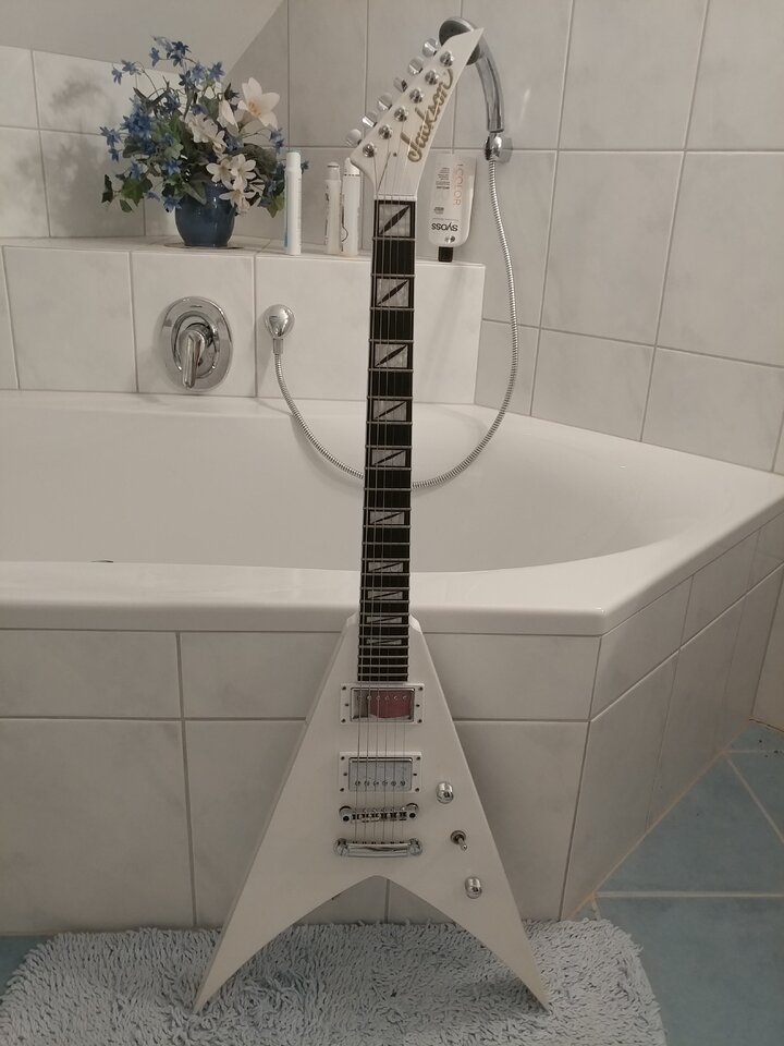 Ja okay, für die Badewanne sei dir eine Gitarre genehmigt. Da wäre mir ein Bass auch zu schade...Tja - mit dem Fotografieren ist das so eine Sache: Wenn ich morgens zur Arbeit fahre ist es dunkel. wenn ich abends heimkomme ist es dunkel. Und mit Blitz sind die Handyaufnahmen noch schlechter.