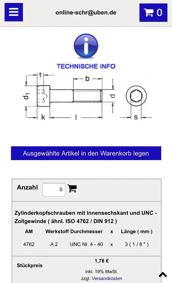 ich probiers mal mit dem eisenwarenladen, laut google gibt es einen kompeteten in meiner nähe.Schaller.....