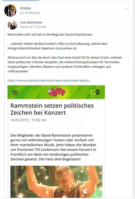Ich mag ja Rammstein nicht mehr, aber dass der Pegida-Gründer sie hasst spricht sehr für sie...