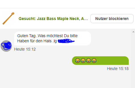 Analphabeten sind's. Dummbolzen.Hab' gerade in Ebay Kleinanzeigen mein Gesuch nach einem Jazz Bass Hals drin.