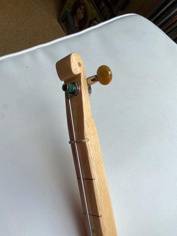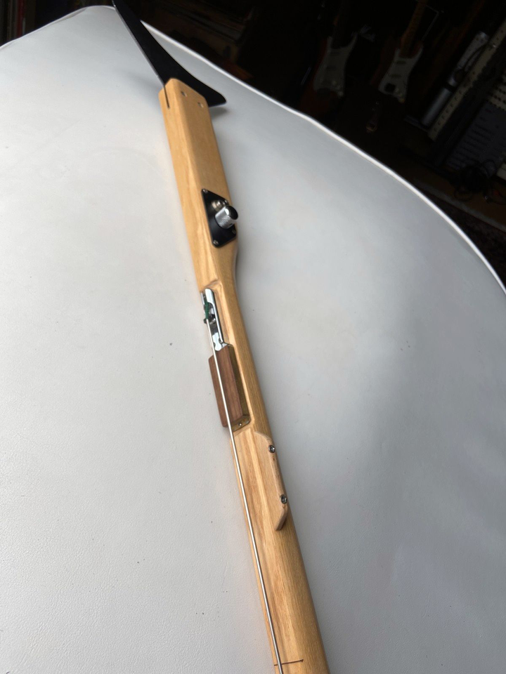 und die Saitenführung unterhalb des Stegs ist auch suboptimal. Ohne einen Saitenhalter "verschwendet" man ja einen Viertel der nutzbaren Saitenlänge, bzw. "nutzt" sie dann für allenfalls störende Resonanzen. Ich mag ja ausgefallene Instrumente, aber ich denke rein vom Äusseren her, dass dieser Hobel eher schwierig klingen wird. Preis und Beschreibung triggern bei mir "Sammler, nicht Player", da bin ich eh raus.Da sind vielleicht an einigen Stellen gewisse Ähnlichkeiten mit einem Kontrabass vorhanden...aber das ganze als Kontrabass zu bezeichnen ist doch etwas gewagt... es wäre zumindest der erste mit Bünden... mich würde ja wirklich mal interessieren, wie der "Schätz-Spezialist" auf 15000-20000 € kommt...:p ich würde ja gern mal aus reiner Neugier Detail-Aufnahmen von der "Brücke" und vom Inneren des Instruments sehen....wenn die Mechaniken und der "Saitenhalter" halten, was sie optisch "versprechen", dann ist selbst 15000 € aber extrem wohlwollend geschätzt..