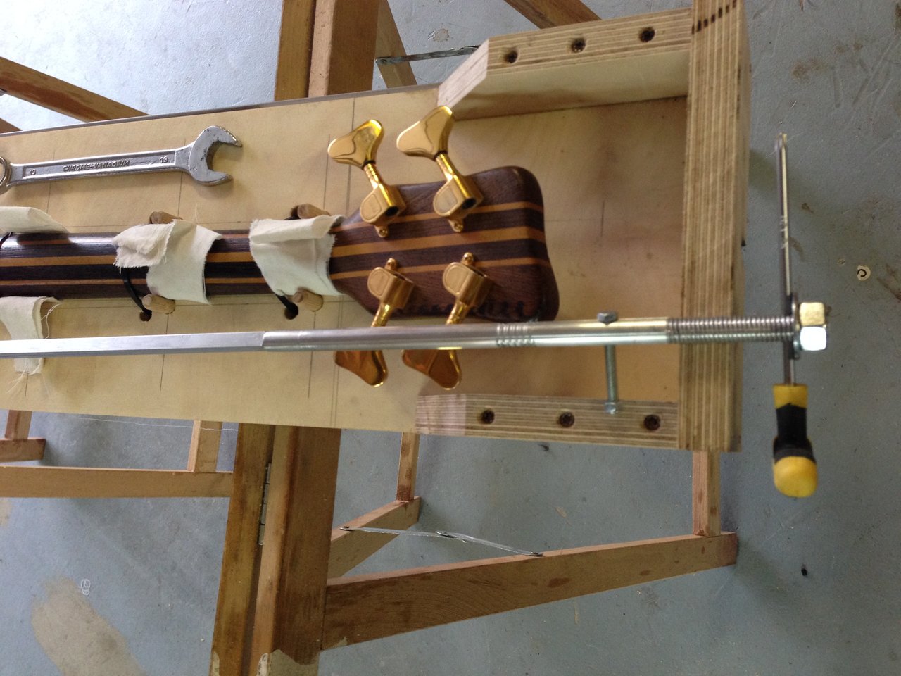 Kleiner Tipp noch, wenn man daran geht die Halskrümmumg zu korrigieren, ich will den Teufel ja nicht an die Wand malen, aber eventuell ist es ratsam sich zuerst anzuschauen wie gut die Spannstabmutter zum Gewinde des Spannstabes passt bevor(!) man sein Instrument in Richtung minimale Halskrümmung einstellen will.
