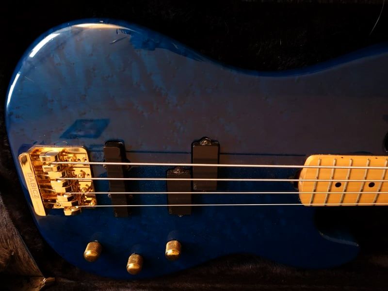 Der Korpus besteht aus schöner dichter Esche. Die Flügel der Mechaniken sind nicht aus Metall sondern aus einem wohl sehr haltbarem Kunststoff. Der Bass hat somit eine Kopflastigkeit von Null.