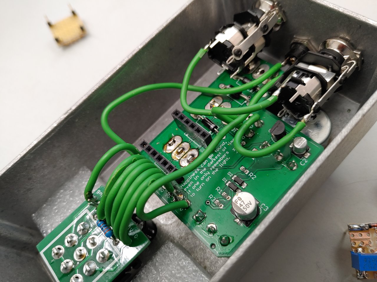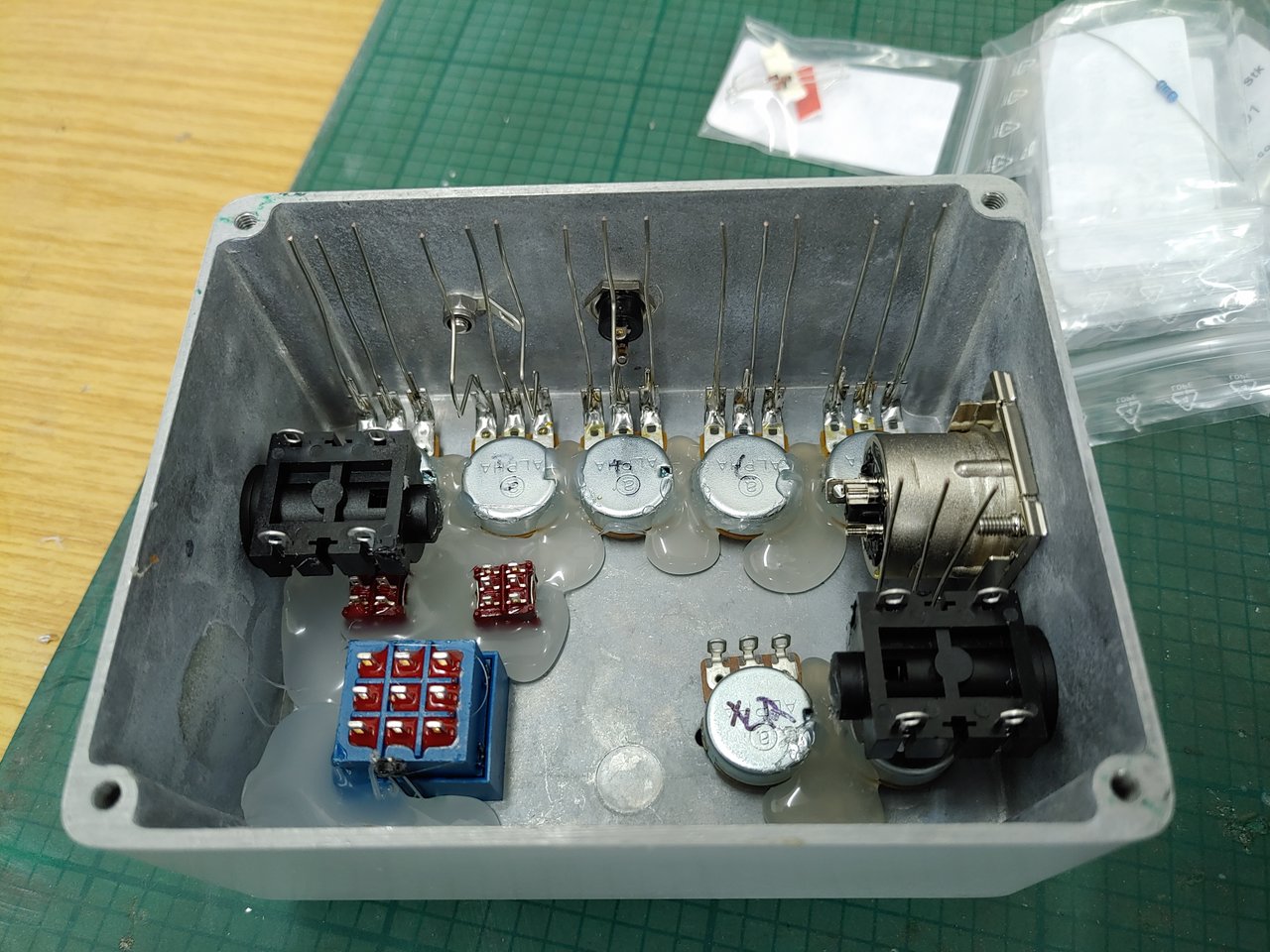 Und ein Bass Driver DI. Hier hab ich die Potis verlängert um die Platine wie im letzten Bild zu sehen zu verlöten.