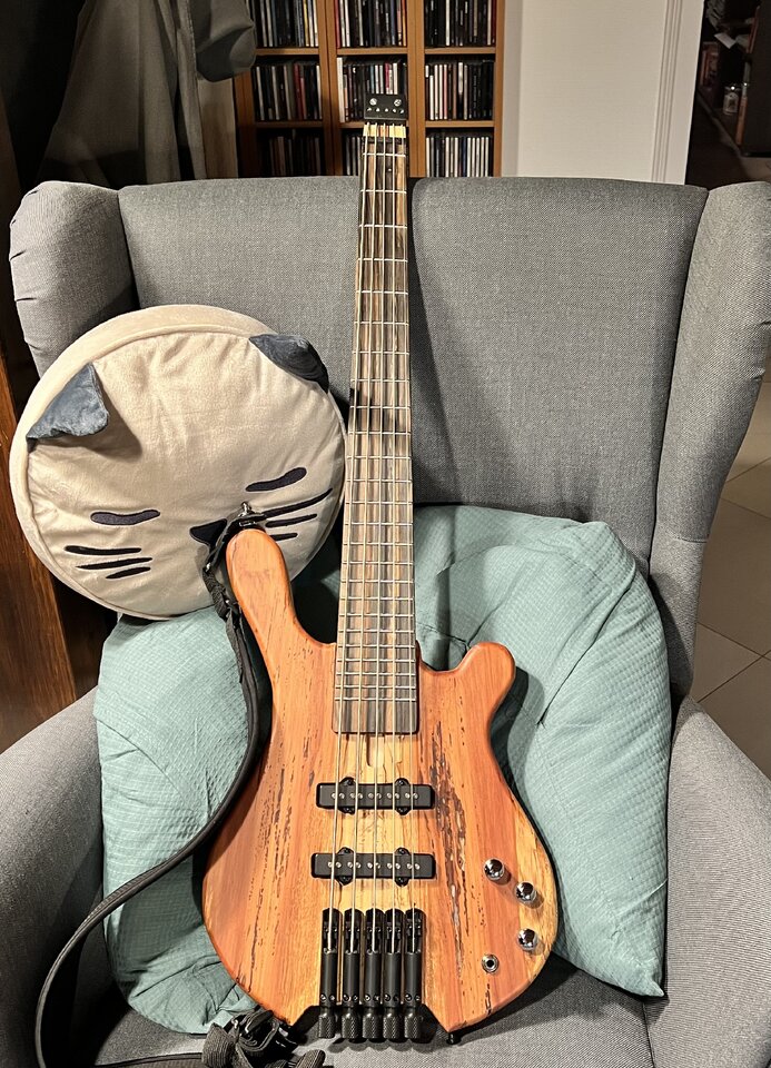 Der sieht klasse aus! Hast du noch deinen hellblauen Musicman?Shortscale Headless 5-SaiterAnhang anzeigen 660300