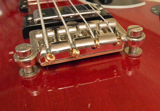 Geklebt - Löten wäre sicherlich besser gewesen.Und du hast unter die Bridge Messingstreifen geklemmt, um die Steifigkeit der Bridge zu erhöhen?