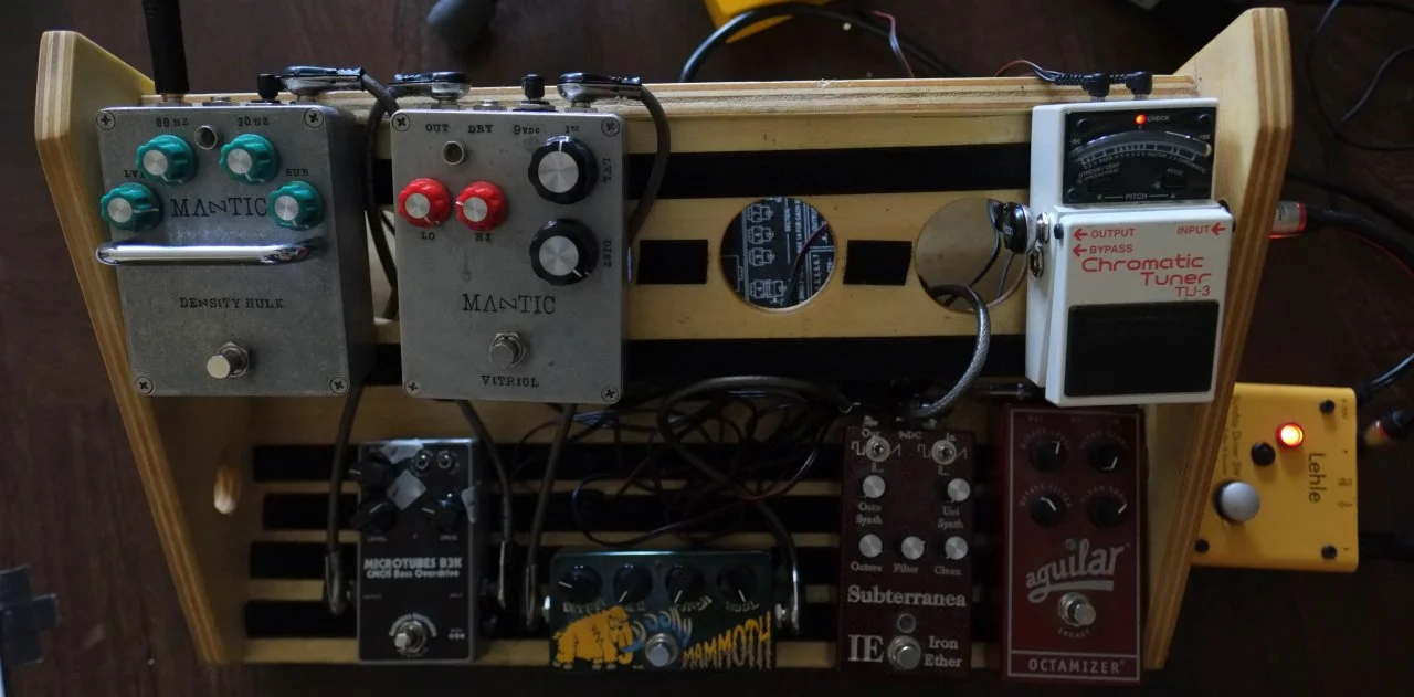 -> Tuner -> Lehle Sunday Driver -> Aguilar Octamizer -> IE Subtrerranae -> ZVEX Woolly Mammoth