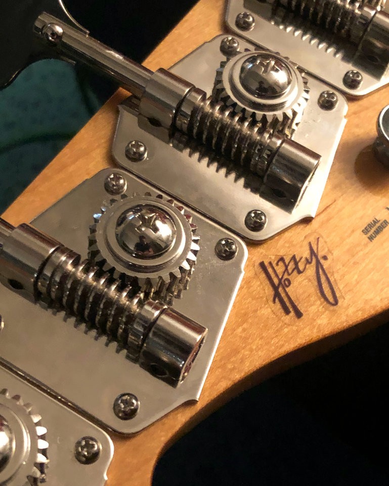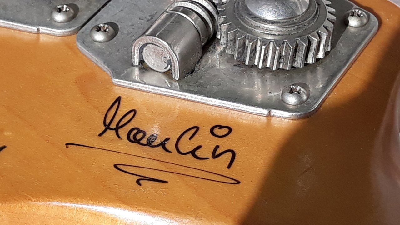 Ach, ich vergaß noch eine Kleinigkeit, die Wavy-Grover Mechaniken sind auch restauriert, neu verchromt aber waren ursprünglich schon auf der Rückseite ziseliert, was auch einzigartig sein sollte.