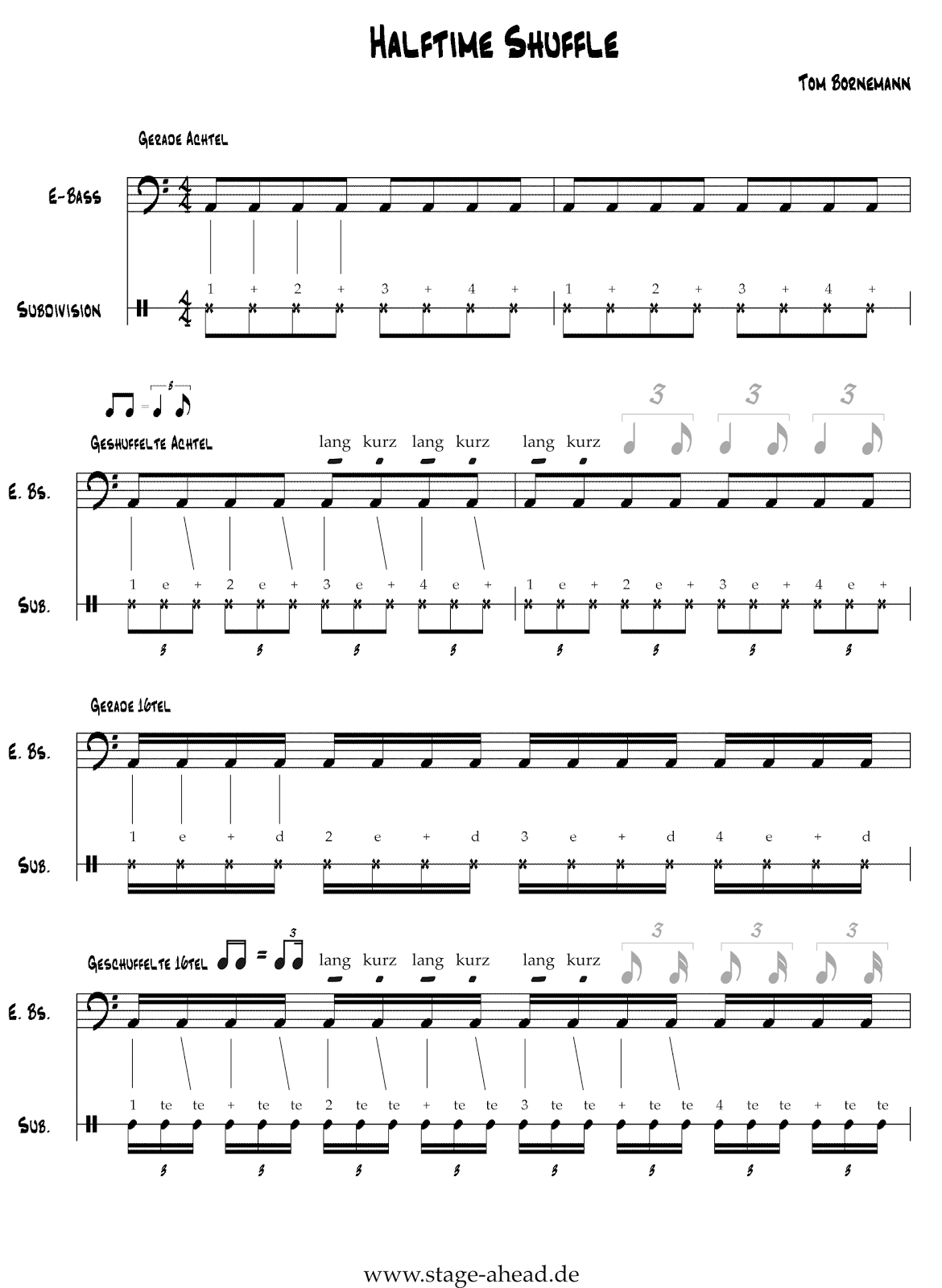 So wie ich das jetzt verstanden habe ist im Shuffle-Feeling doch so, wenn man zB eine punktierte Achtel mit einer Sechzehntel hat, das die Sechszehntel dann vorgezogen werden soll , also auf der 3 Achteltriole.