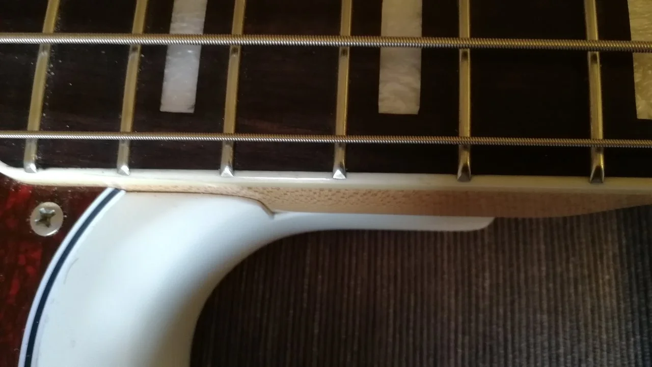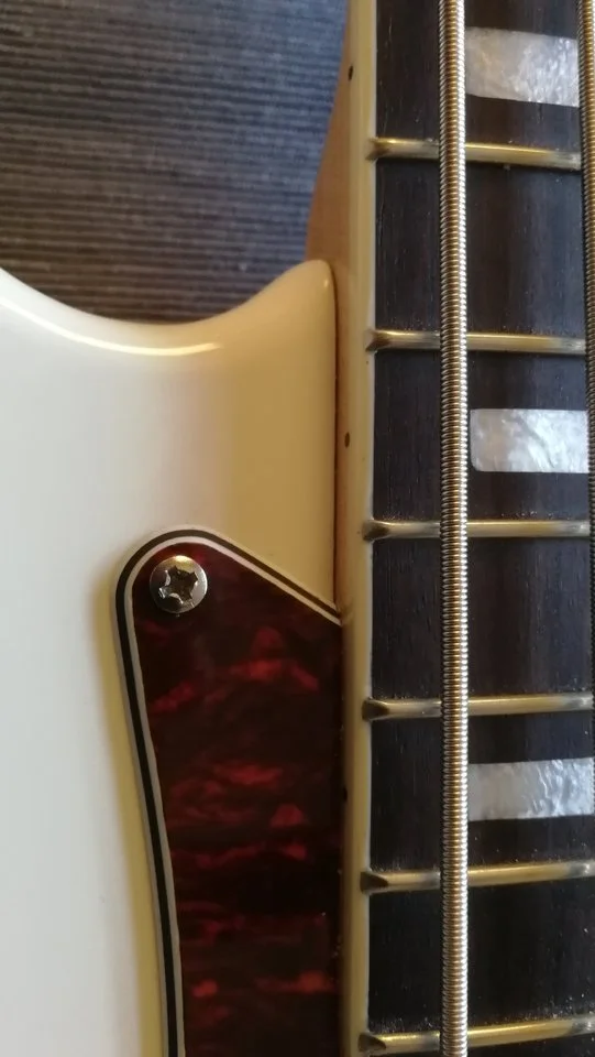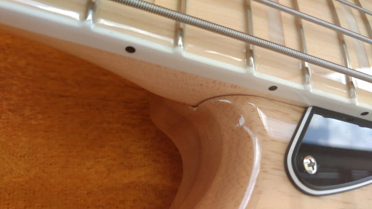 Ich habe aber festgestellt, dass am Übergang von Hals zu Body ein feiner Spalt ist, den ich so bei meinen andern Bässen noch nicht gesehen habe. Ich habe das Teil daraufhin bei Thomann tauschen lassen und bei dem neuen sieht es genauso aus. S.a. das unten stehende Bild