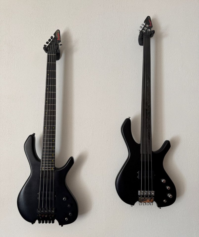 Sind die Bässe, vorallem der Linke, vom Lack des Bodys her, so ganz leicht gesprenkelt?Volle Zustimmung zu deinen Ausführungen. Eine Sache würde Ich noch ergänzen. Ich habe bisher keinen anderen Bass in der Hand gehabt, welcher annährend über das Handling eines Bogarts verfügt. Die Bässe hängen oder stehen wie du sie dir an den Körper nagelst. Kopflastigkeit gibt es nicht. Man hat beide Hände wirklich frei um zu spielen und muss nicht irgendwo den Arm auflegen oder gegenhalten. Dies ist mir erst so richtig wieder bewusst geworden, seit ich Live einen Warwick verwende. Ich bin auch am überlegen ob bei mir deshalb der dritte Bogart einzieht. Schauen wir mal.