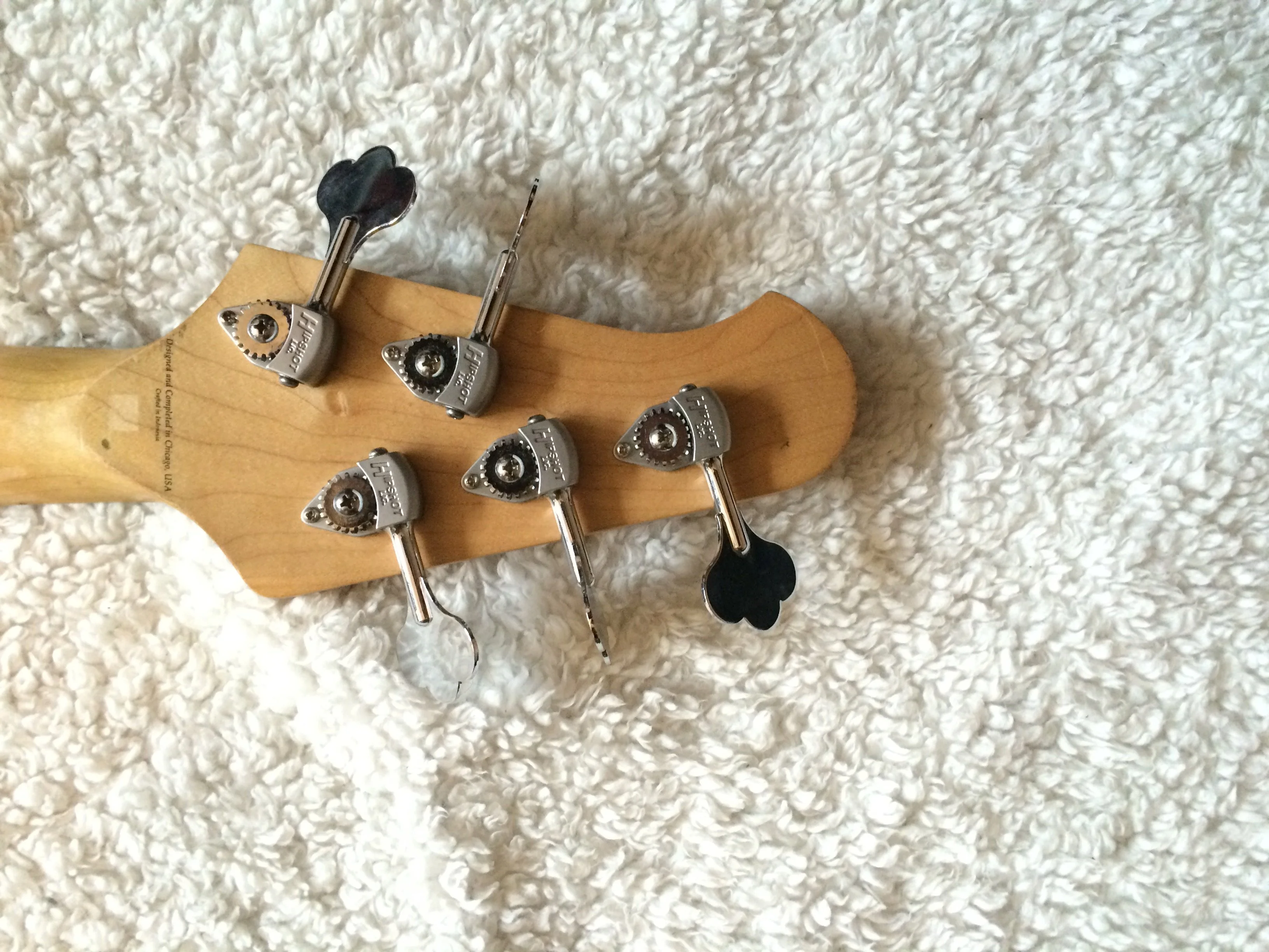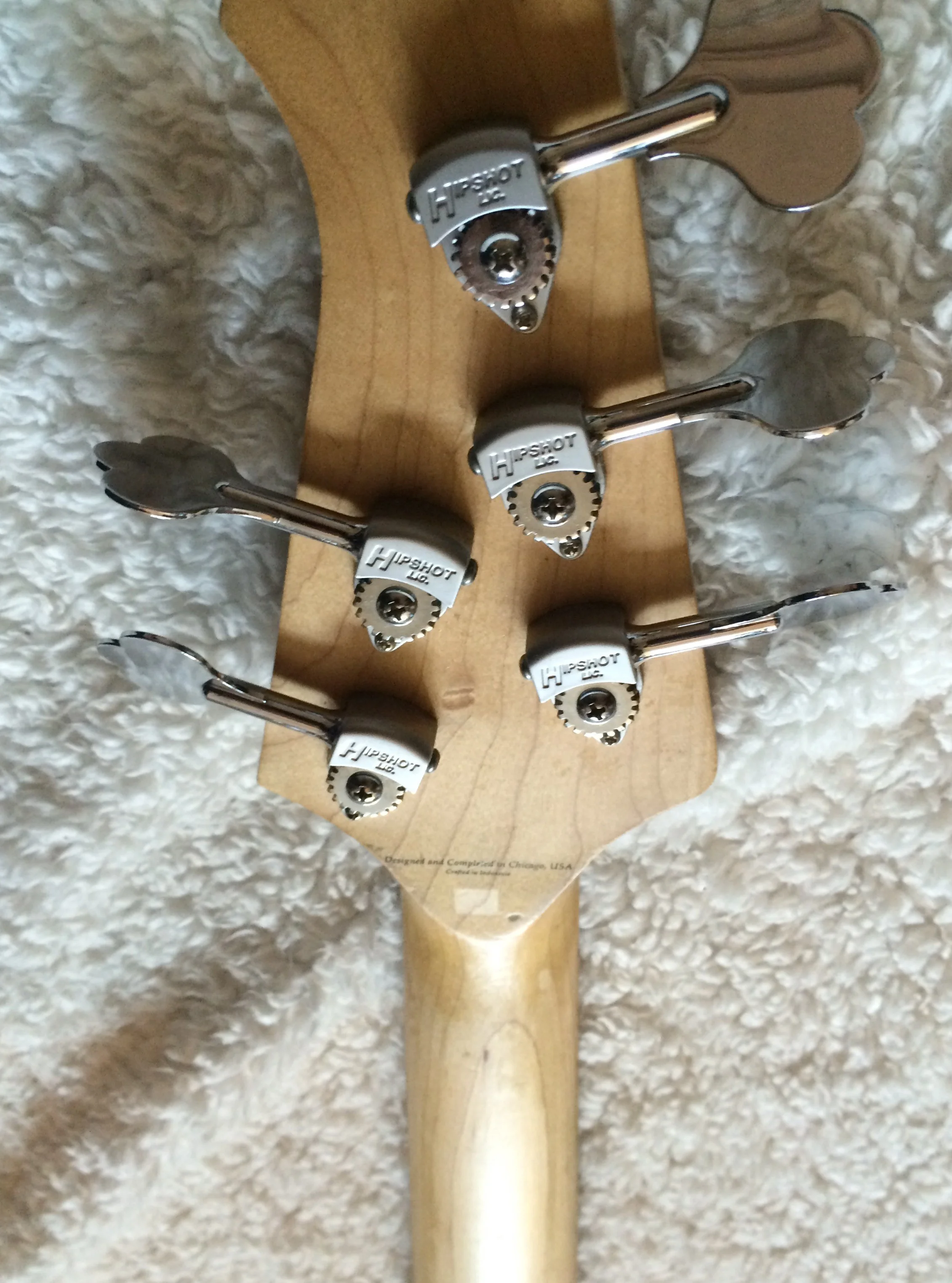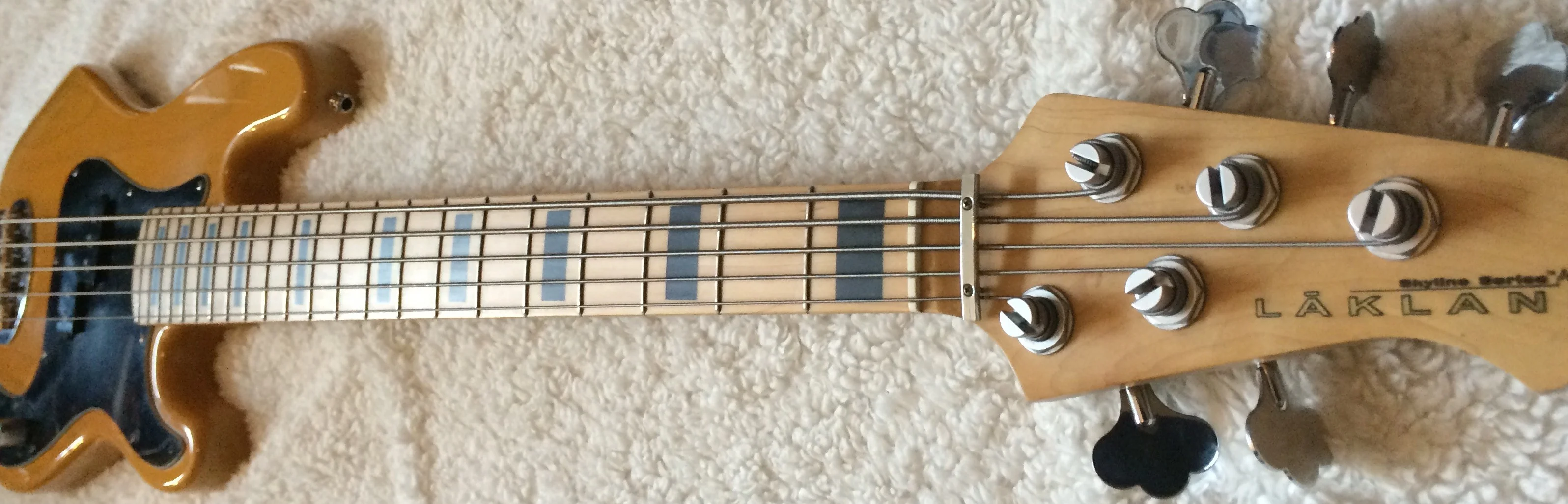 Seitdem ich den Bass aus Chicago importiert habe ist es mein Hauptinstrument und hat dementsprechend Gebrauchtspuren. Man sieht und fühlt z.B. Auf der Halsrückseite wo viel gespielt wurde, dies beeinträchtigt allerdings das Handling nicht im geringsten.