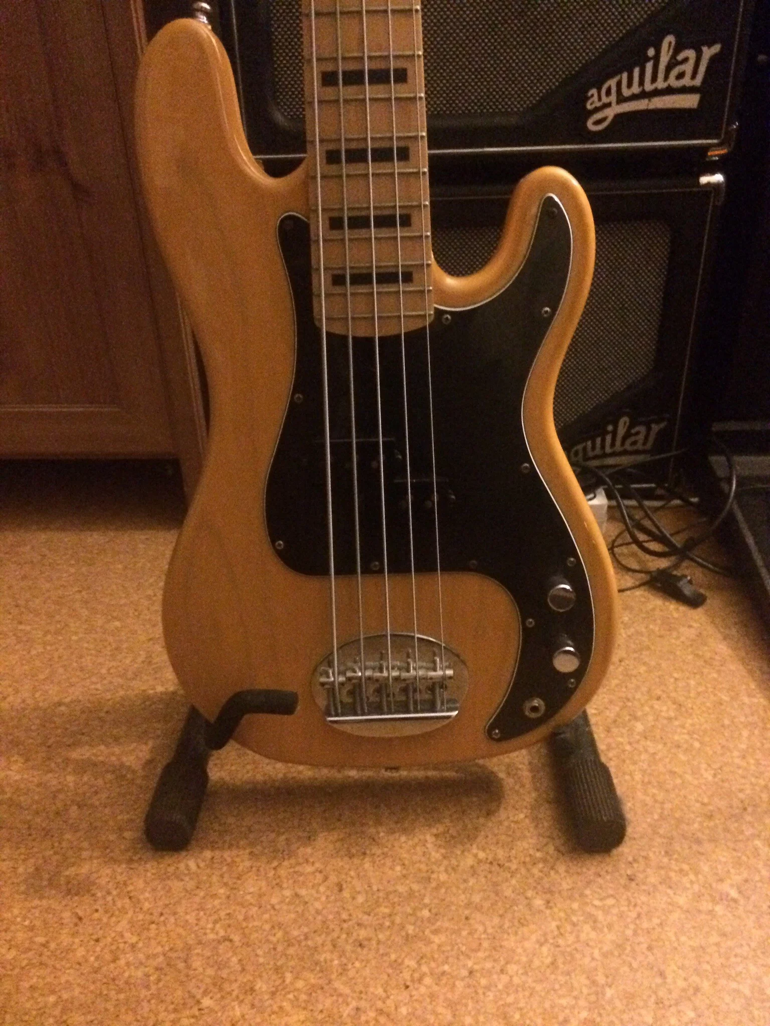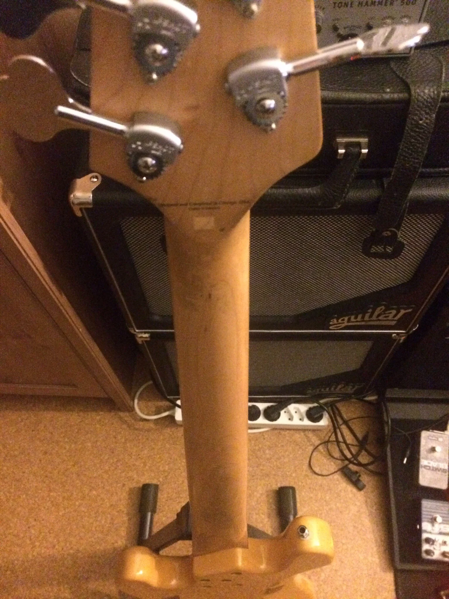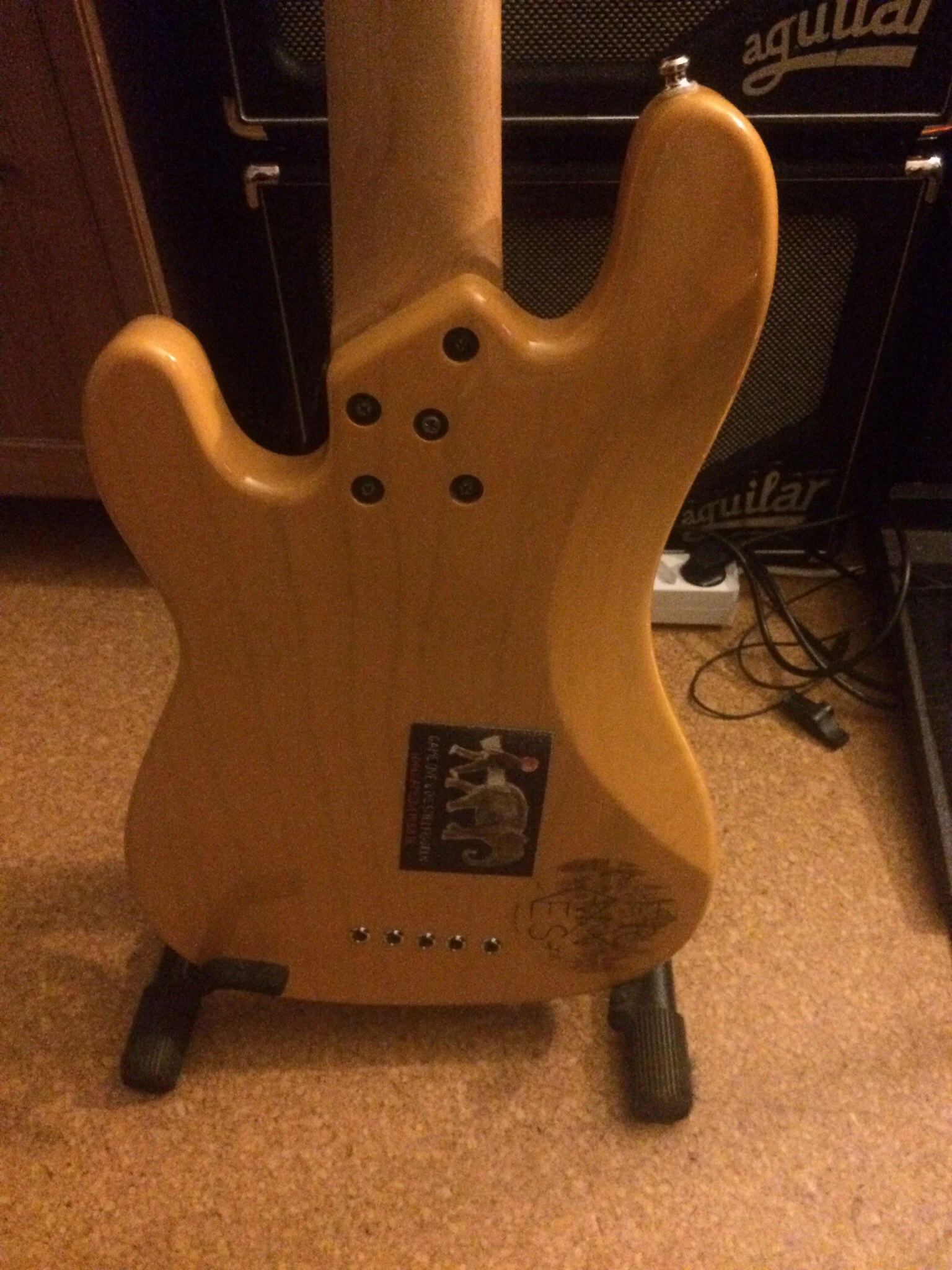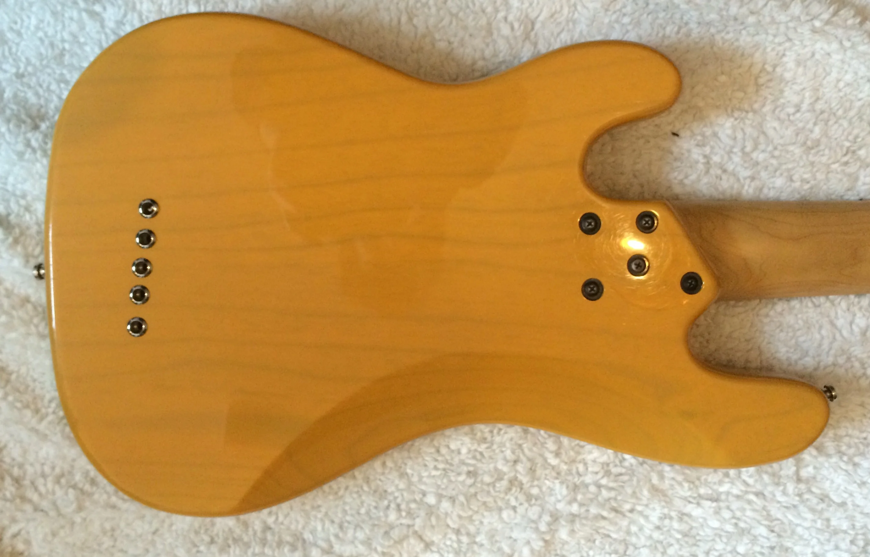 Seitdem ich den Bass aus Chicago importiert habe ist es mein Hauptinstrument und hat dementsprechend Gebrauchtspuren. Man sieht und fühlt z.B. Auf der Halsrückseite wo viel gespielt wurde, dies beeinträchtigt allerdings das Handling nicht im geringsten.