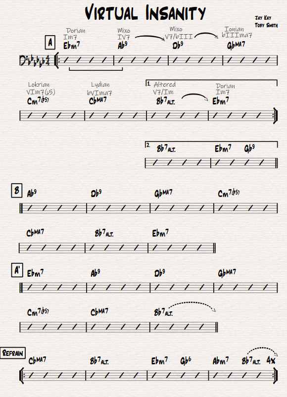 Ebm7 - Ab7sus4 - Dbmaj9 - Gbmaj11 - Cm7b5 - Hmaj7 - Bm7#5