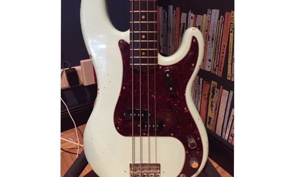 Ich träume immer mal wieder von einem Precision Bass in aged Ice Blue Metallic oder Firemist Silver, mit vergilbtem Klarlack. Etwa so eine Farbe, aber schön mit Lackrissen und etwas abgewetzter: