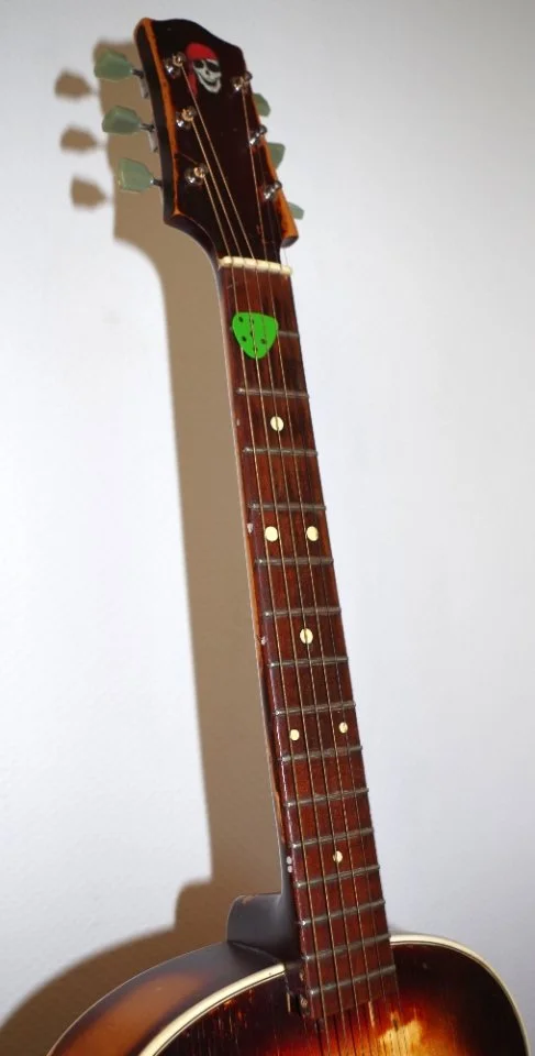Dazu müsste ein neues Griffbrett drauf - sollte eig. kein Problem sein. In diesem Zug würde ich gleich einen Spannstab einbauen - den gibt's da nämlich nicht