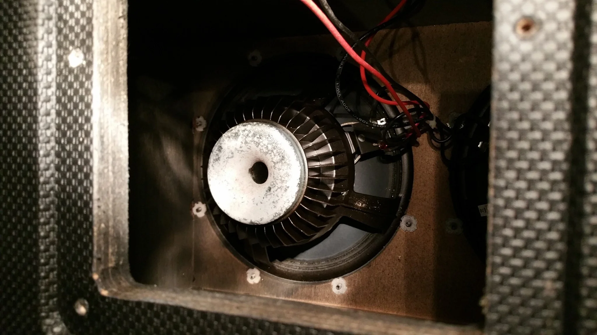 Kann eine Schwingspulenabdeckung bei Überlast eigentlich so heiß werden, dass der Lack zerstört wird? Sind die beiden Weißlinge die oberen oder die unteren Lautsprecher?