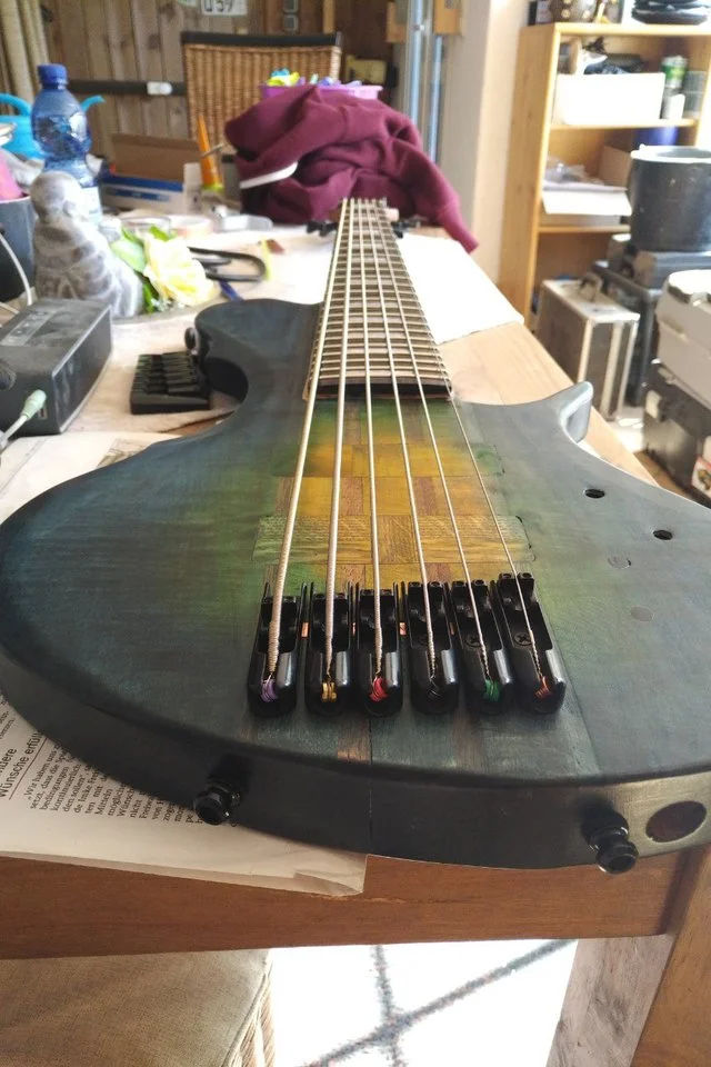 Ich hab das Glück, in meinem Elternhaus eine recht gut ausgestattete Werkstatt zur Verfügung zu haben und habe dort schon das eine oder andere Instrument modifiziert oder mit Hilfe einer CNC-Fräse selber gebaut (zumindest die Bodys). Ich wollte euch nun einmal mein letztes Projekt zeigen...