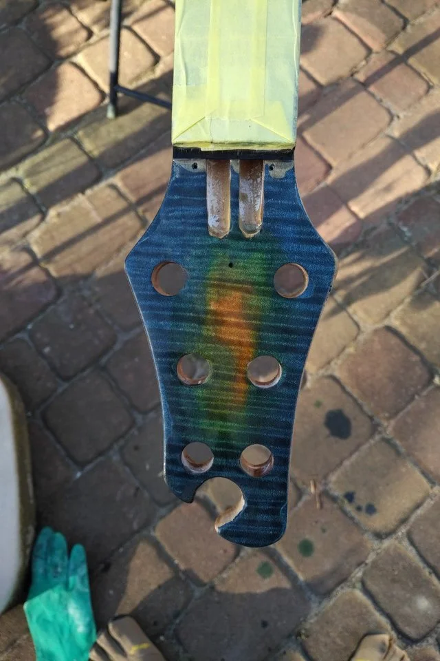 Als Schutz haben Body und Headstock eine Schicht Treppen- und Parkettlack bekommen
