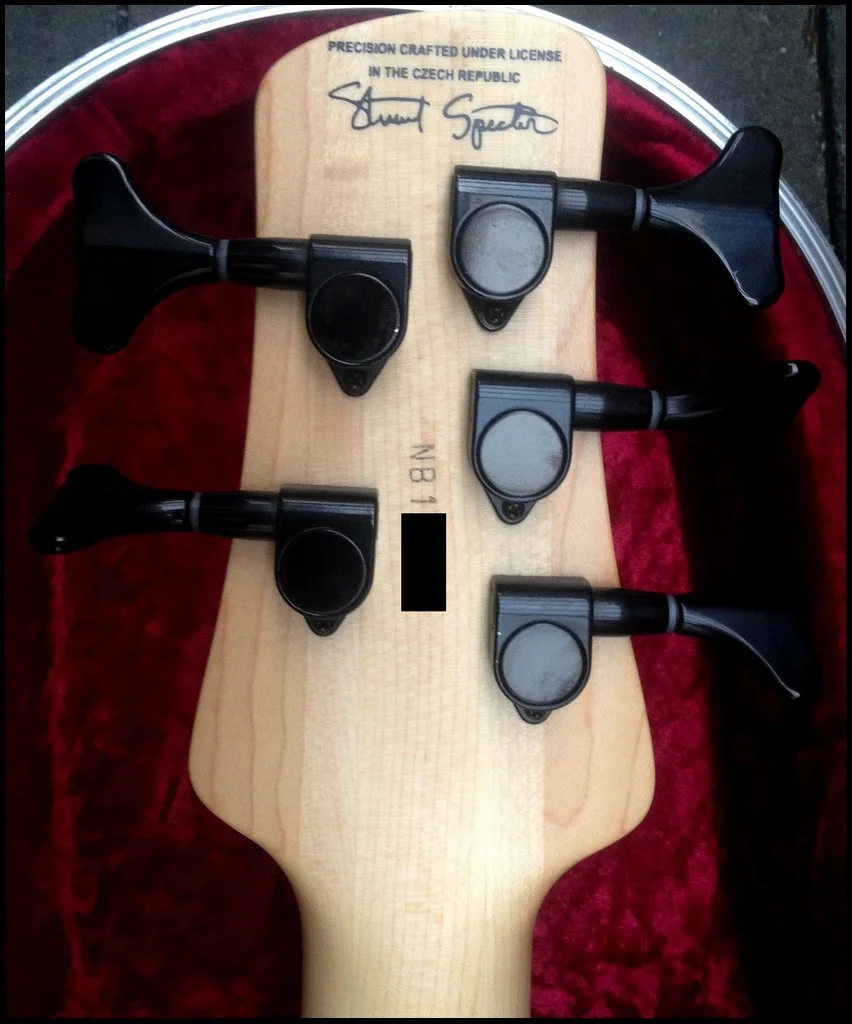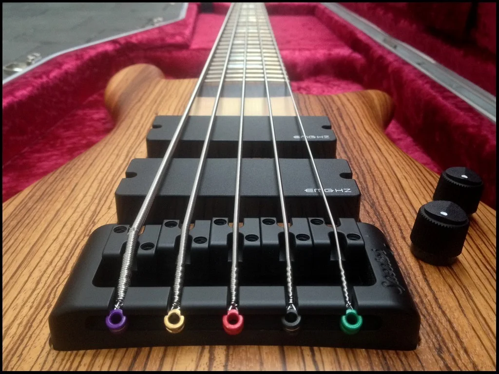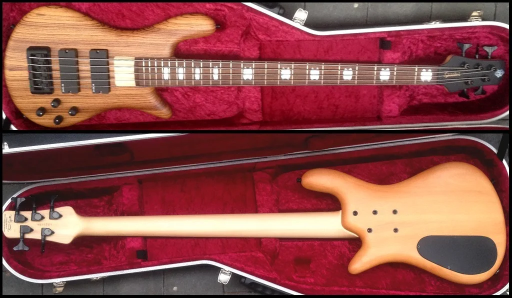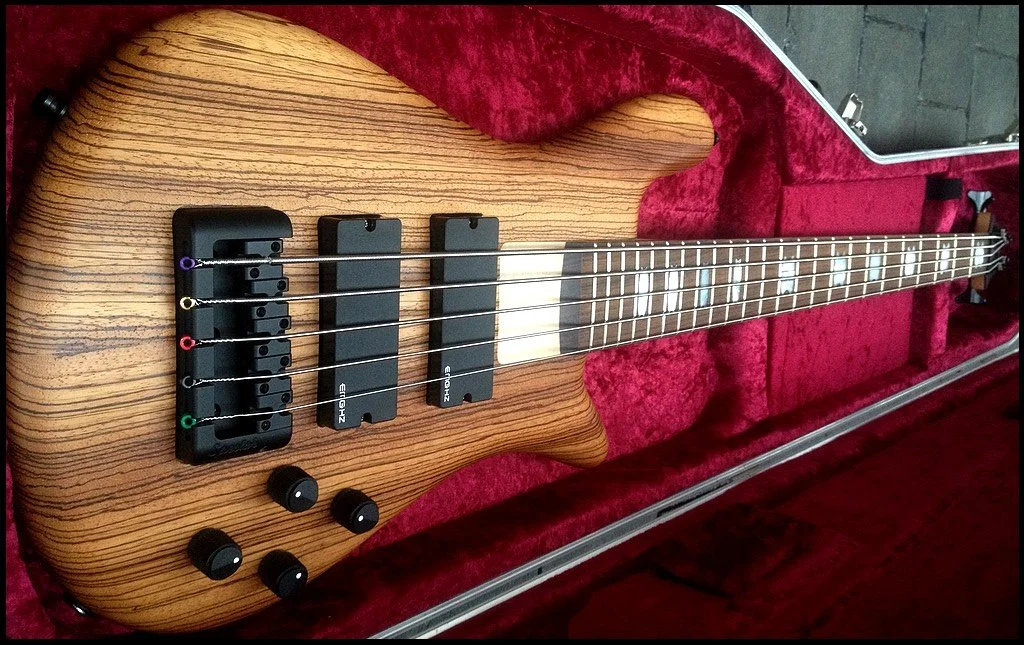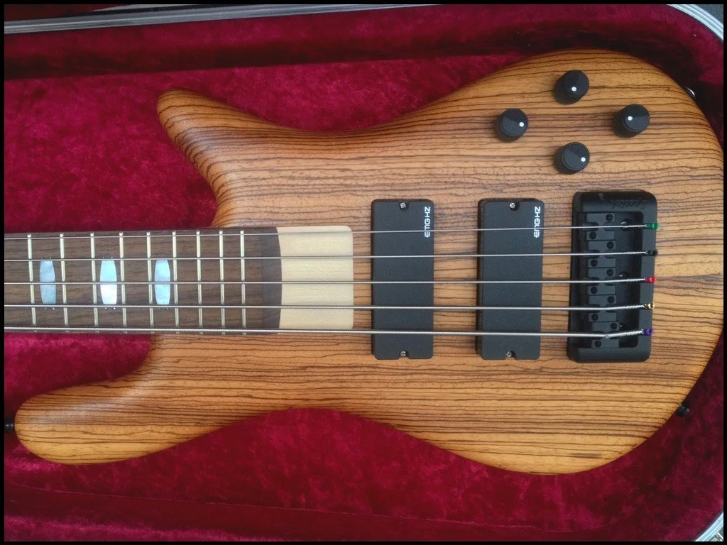 Aus einem Artist-Deal von Dezember 2013 biete ich hier einen traumhaften Spector 5-Saiter aus der hochwertigen Tschechien-Serie Rebop 5 EX DLX an. Als Besonderheit verfügt der Bass über eine atemberaubend gemaserte Zebrawood Decke in einer Matt-Lackierung, die selbst die Holzporen spürbar macht. Ich habe viele Spectors angespielt, bevor ich mich für dieses Modell aufgrund von Haptik, Optik und absolut überzeugendem Sound entschieden habe. Selbst im Vergleich zu den EURO LX und den vielfach teuren USA-NS-Modellen fand ich den Sound dieses Instruments in Bezug auf einen modernen, absolut durchsetzungsfähigen Knurr-Sound am überzeugensten. Das liegt sicherlich auch am 6-fach verschraubten (und nicht durchgehenden) Hals, was Ansprechverhalten und Knurr-Note zu Gute kommt.