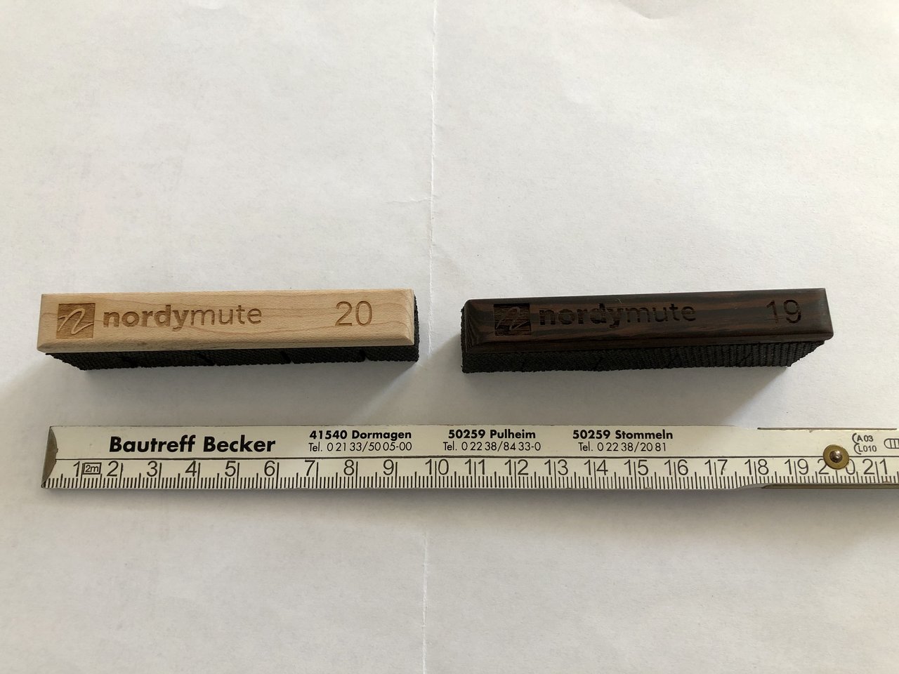 Doch, tut es. Der selbstgebastelte Mute ist deutlich dicker als der NordyMute und das wirkt sich ganz erheblich auf den Sound aus. Genauso wie ein breiteres Schwammstück mehr dämpft als ein schmaleres.An der Breite liegt es nicht.