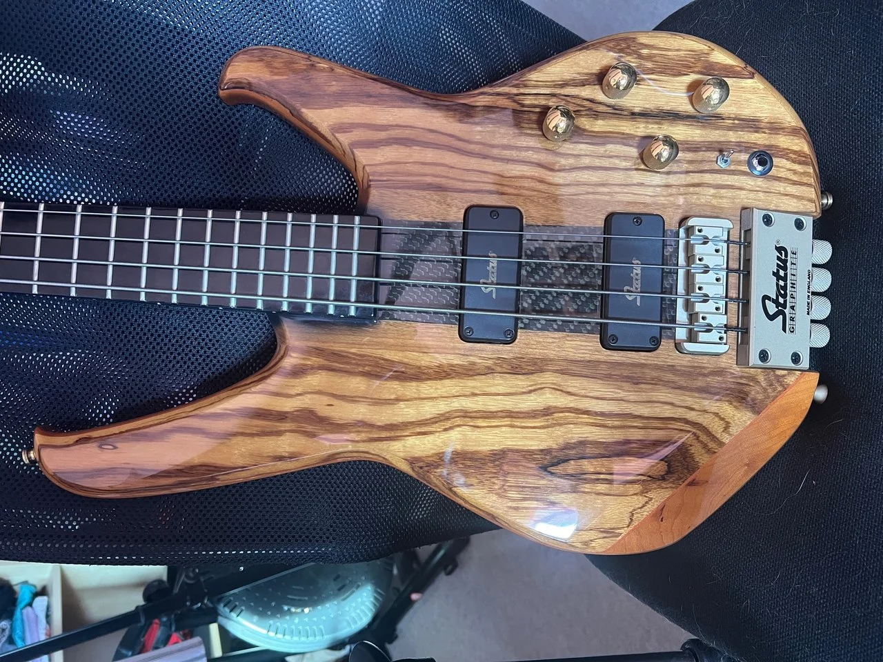 suche Status Graphite Headless, 4 oder 5 Saiter, geschraubter oder durchgehender Carbon- Hals. Bitte kein Holz-Hals.
