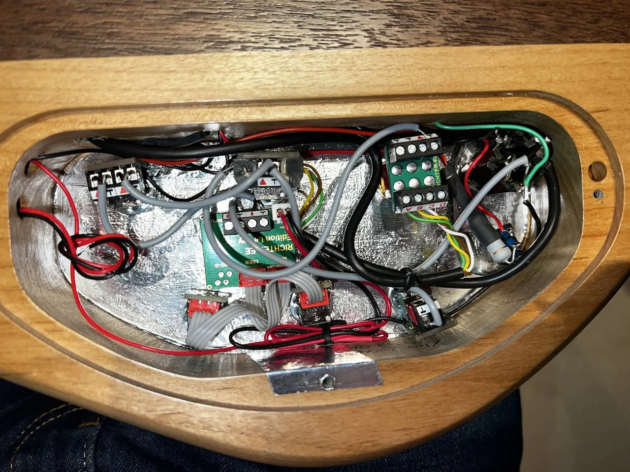 Tonabnehmer eingebaut und mit freundlicher Genehmigung der Jungs von LeFay die spezielle Elektronik die auch in meinem Herrn Schwarz serienmäßig drin ist.