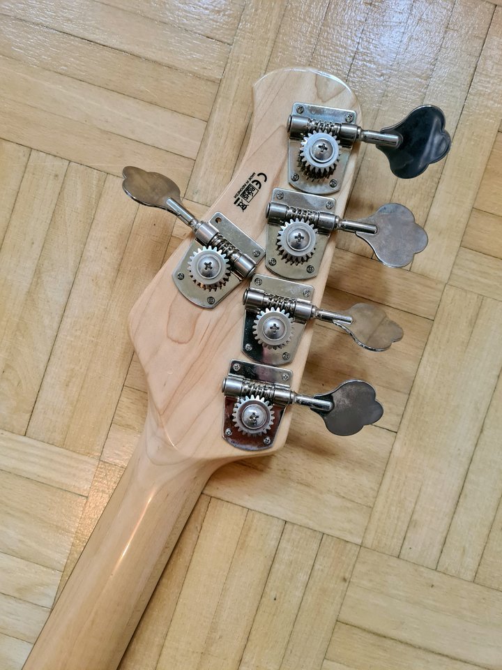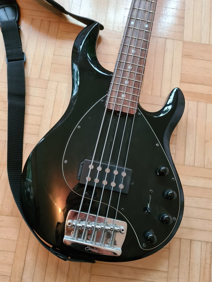 Sterling Ray 35. Schwarz, matching headstock. Sehr gute Bespielbarkeit, optisch gut, mit Benutzungsspuren. (Kratzer, Spielspuren) Klingt wie der Real Deal, super Low B, wiegt aber deutlich weniger als die meisten Music Man 5-Saiter. Mit ca. 4,1 kg ein echtes Fliegengewicht.Anhang anzeigen 528224Anhang anzeigen 528225Anhang anzeigen 528223Anhang anzeigen 528222Anhang anzeigen 528221Anhang anzeigen 528220