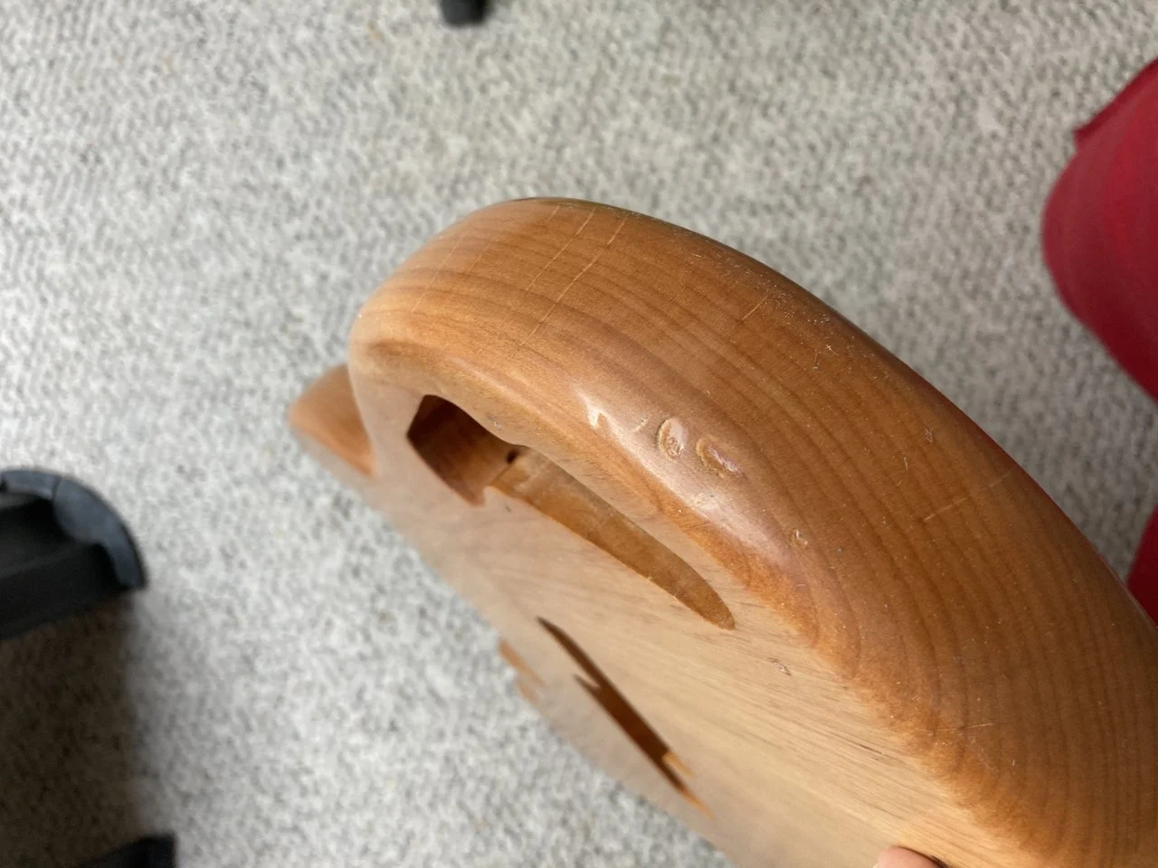 Dann habe ich also 4x Tru Oil draufgepinselt und dazwischen lange trocknen lassen und jeweils mit Stahlwolle 000 geschliffen.