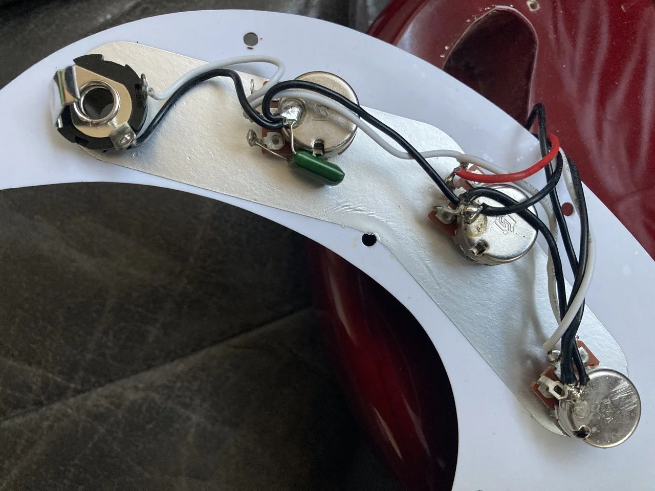 Grund für den Austausch war dass mir die Tonblende nicht gefallen hat. Auch die ist jetzt besser wobei ich überlege zum 47nF noch einen 22nF parallel anzulöten, damit sie besser greift. Mit Flatwounds ist mir der Unterschied zu gering.
