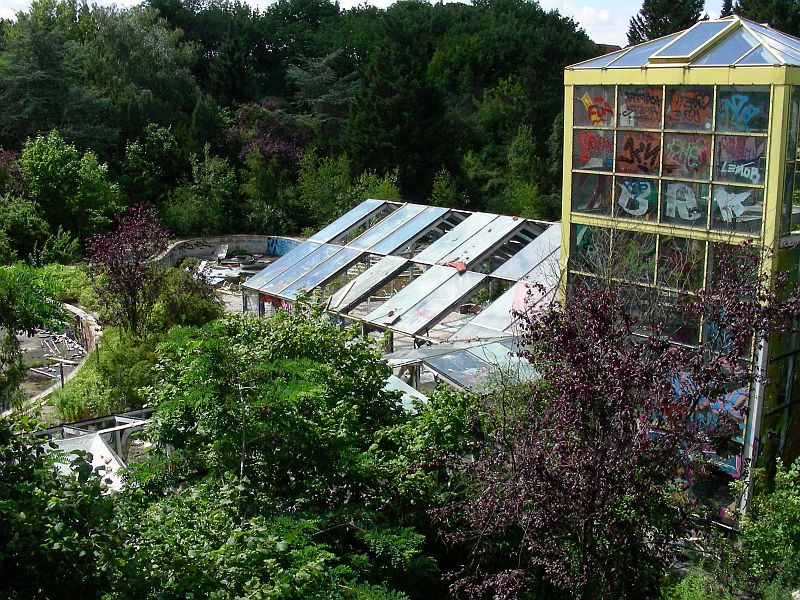 unterirdisch dagegen-die grösseren gebäude sind mit unterirdischen gängen verbunden, durch die früher eine kleine bahn fahren konnte, zur versorgung,