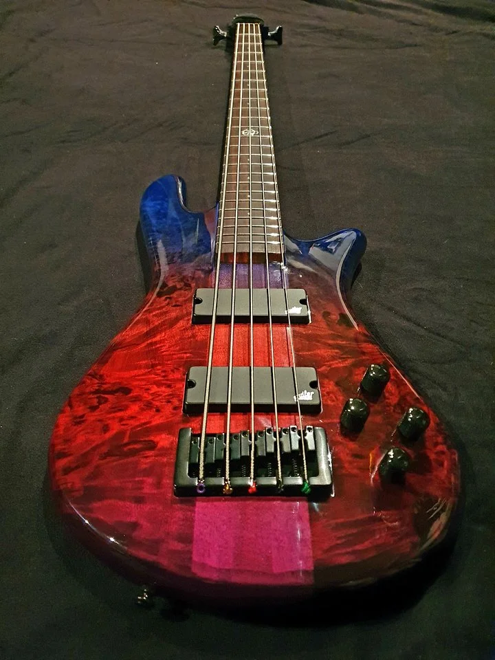 Und mein 5er den ich mal hatte hatte eine 34" Mensur.Praktisch der Vorläufer vom Euro. Unterschiede: Body komplett aus Ahorn (schwerer als die jetzigen LX-Sandwichbodys), keine Crowninlays, teils anderer Preamp (Tonepump gab es da noch nicht).
