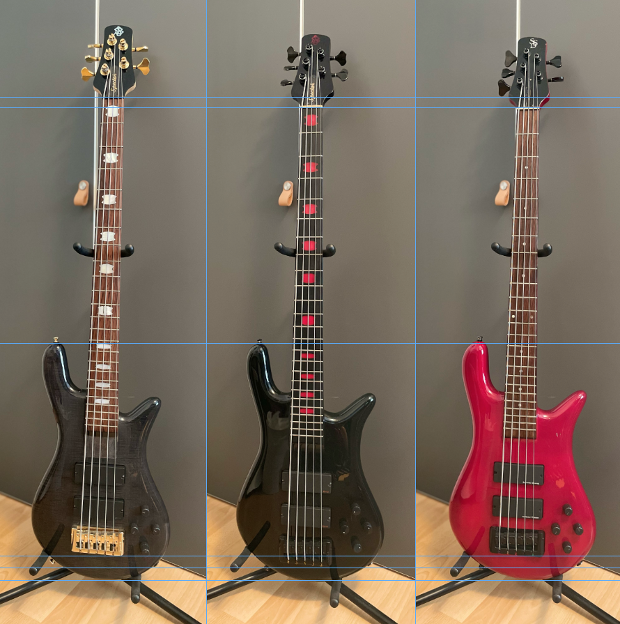Frische Saiten sind einfach eine Macht. Ich spiele Ernie Ball Super Slinkys 40 - 125 für die C-Stimmung. Wenn der Bass auf Standard-Stimmung wäre, würde ich die Regular Slinkys 45 - 130 nehmen.