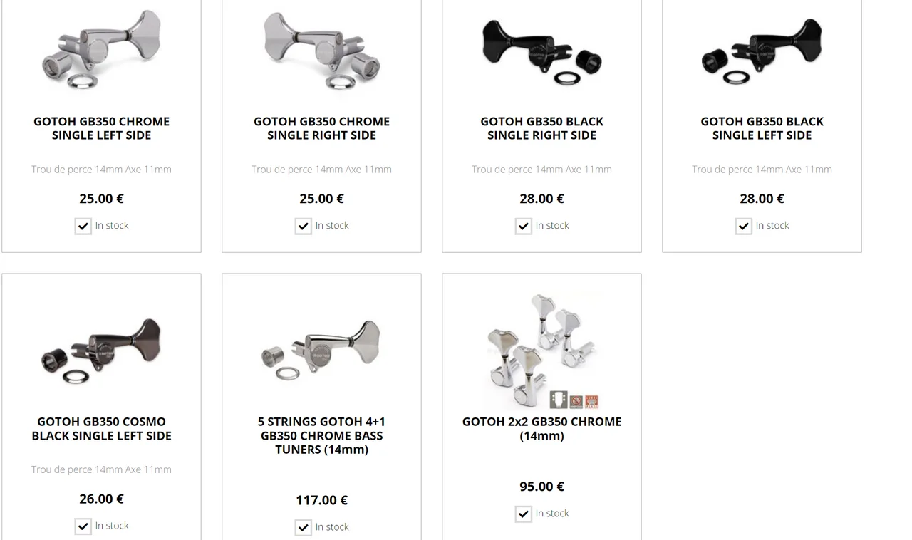 Gotoh GB350-5 3L/2R Black Bass Tuners; GB350-5-B L3+R2; Mechanikensatz für E-Bass; Res-O-Lite Serie, superleichte Bassmechaniken aus Duralumin; entwickelt zur Behebung von Kopflastigkeit; 5 Stück; Konfiguration: 3 Links/2 Rechts; Konstruktion:...119,00€www.thomann.de
