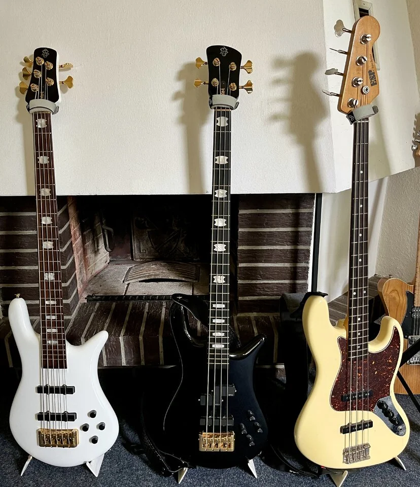 Es soll ja auch Studios geben/gegeben haben, die Bässe zur Verfügung stellenWenn man Equiboard, Wikipedia und diversen Foren glauben darf, war ein Warwick SS1 der erste gute Bass, den sich Stuart von den 2000 BPd, die seine Mutter für Ihn gespart hatte, gekauft hat, als er ausgezogen war. Er soll damit Emergency vollständig eingespielt haben, auch weil es sein einziger guter Bass zu der Zeit war. Klingt für mich auch so