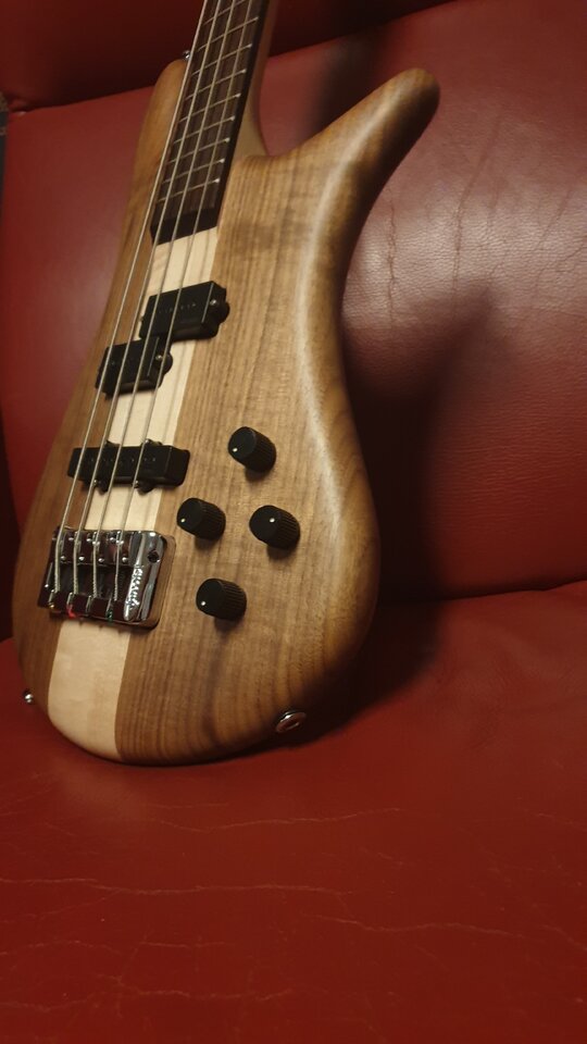 Es ist bis auf die Klinkenbuchse auf das Blendpoti durch den Umbau auf Vol/Vol/Tone alles original. Leider begint die Klinkenbuchse auch schon mit leichten Zicken, sonst ist det Bass in top Zustand, wiegt knappe 4Kg und klingt echt gut. Die Walnussflügel sind Geschmackssache, ich mag sie immernoch und es ist nicht der Grund, warum ich über einen Verkauf nachdenke. Es muss was gehen und mein Euro 4LX bleibt definitiv.