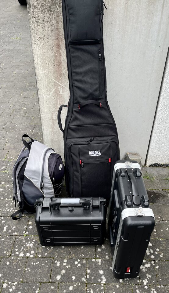 Mein ganzes Gepäck für einen Gig mit Übernachtung sieht das insgesamt so aus: