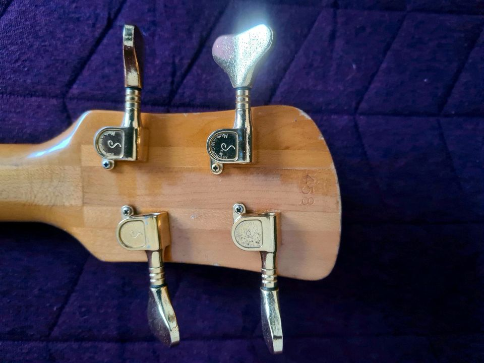 Der Zustand und der fehlende originale Bridge PU drücken ordentlich den Kurs. Das Ahorn Naturfinish wird jetzt auch nicht nicht super beliebt sein und ich finde man sieht dem Hobel schon an das er ordentlich wiegt.Was ist so ein Spector tatsächlich wert? Aus dem Baujahr werden nicht viele über den Teich gekommen sein. Aber der Zustand... der drückt den Preis natürlich nach unten.